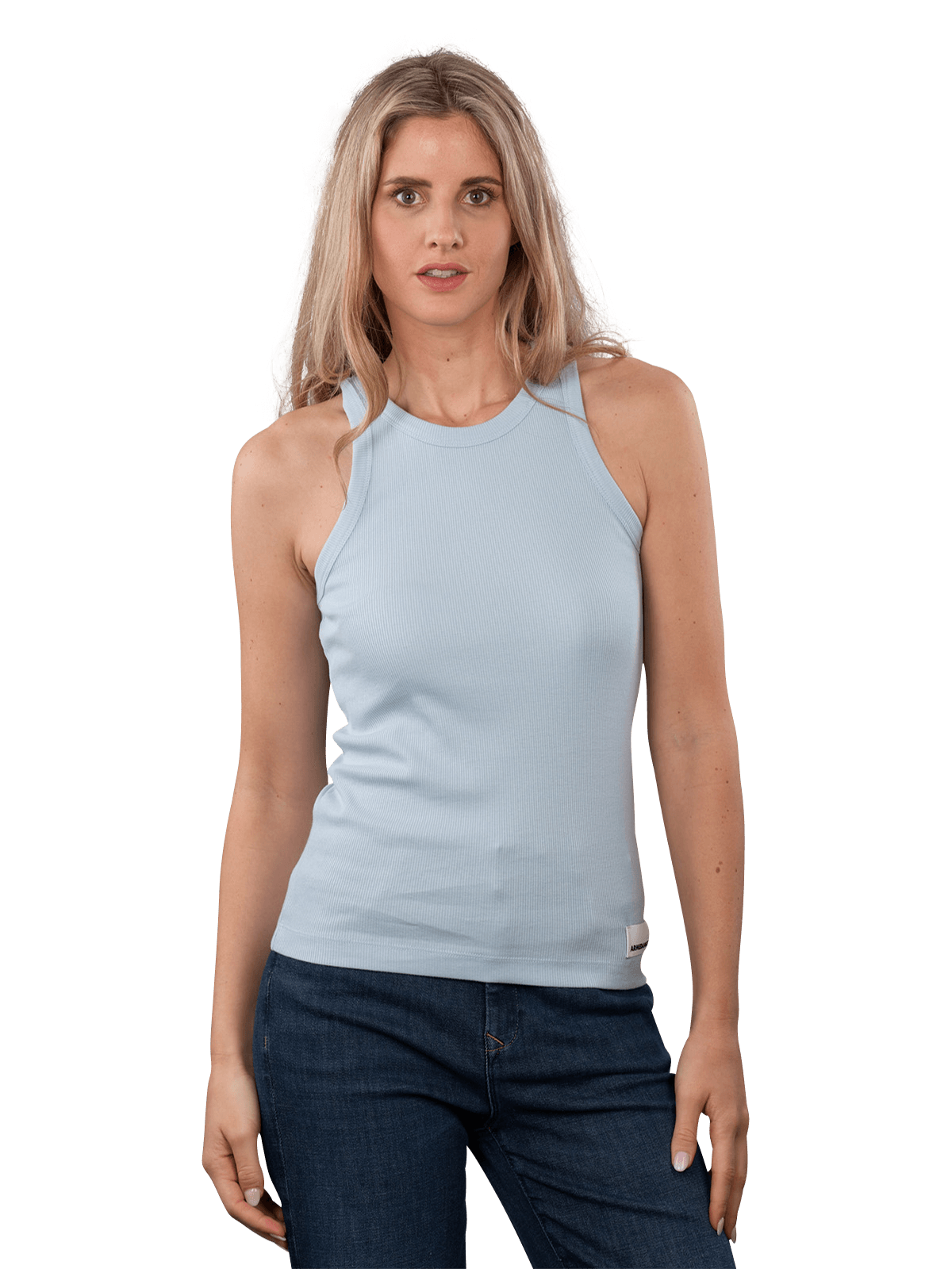 Das Armedangels Kanitaa Tanktop in Blue Glow bietet einen Rundhalsausschnitt und besteht aus 97% Baumwolle und 3% Elasthan. Es ist für die Maschinenwäsche bei 30°C geeignet und sollte nicht gebleicht werden. Dieses Tanktop kombiniert Komfort mit einem modernen Look und eignet sich für verschiedene Freizeitaktivitäten. Die Verwendung von Bio-Baumwolle unterstützt nachhaltige Mode und schont die Umwelt.