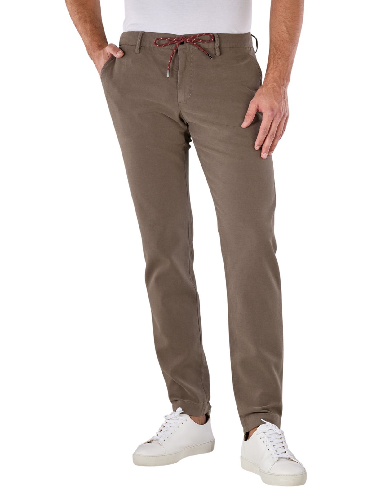 Die Alberto Jump Pant Super Stretch Cotton in Braun ist eine Chino für Männer mit geradem Beinausschnitt und mittlerer Bundhöhe. Sie bietet eine Slim Fit Passform und besteht aus 61% Baumwolle, 36% Lyocell und 3% Elasthan, was für optimale Dehnbarkeit sorgt. Die Stoffdicke ist standard und die Hose besitzt einen Reissverschluss. Pflegeleicht im Schonwaschgang bei 30°C, ist sie zudem OEKO-TEX STANDARD 100 zertifiziert.