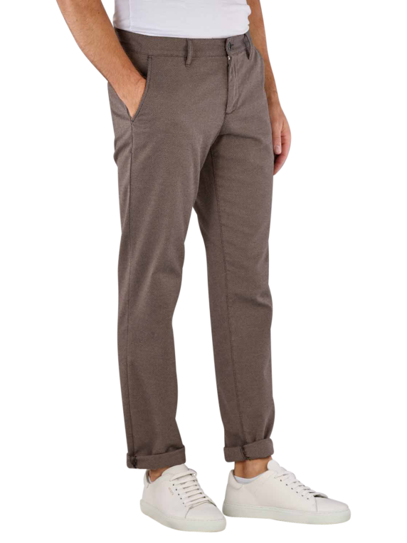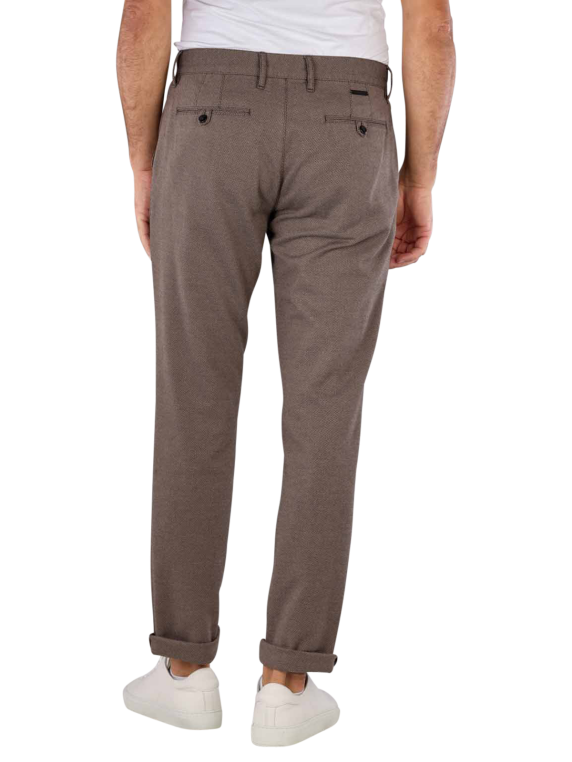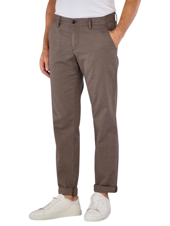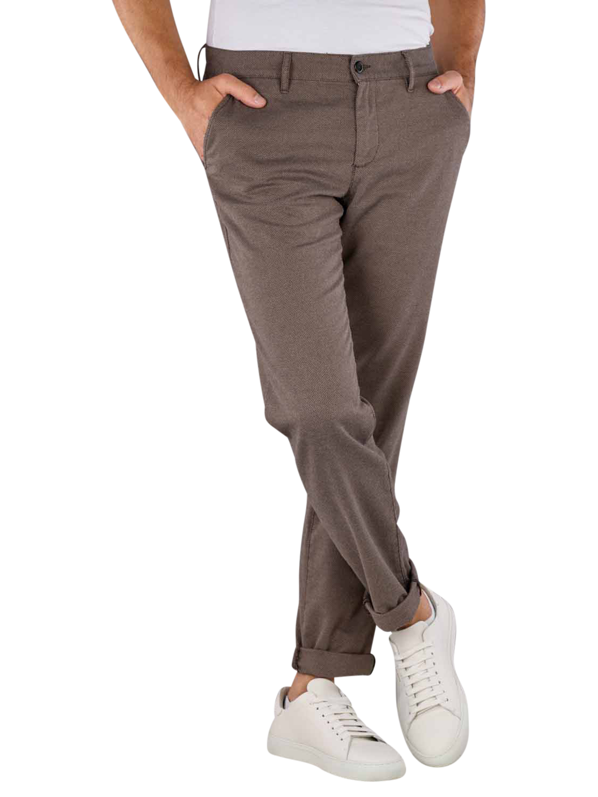 Die Alberto Lou Pant New Wool Look Brown ist eine Herren-Chinohose mit geradem Beinausschnitt und mittlerer Bundhöhe. Sie ist braun, Slim Fit und besteht aus einem Stoffmix mit 53% Baumwolle, 29% Polyester, 16% Viskose und 2% Elasthan. Die Hose bietet einen Stretchanteil und schliesst mit einem Reissverschluss. Pflegeleicht bei 30°C Schonwaschgang, nicht bleichen. Zertifiziert nach STANDARD 100 by OEKO-TEX.