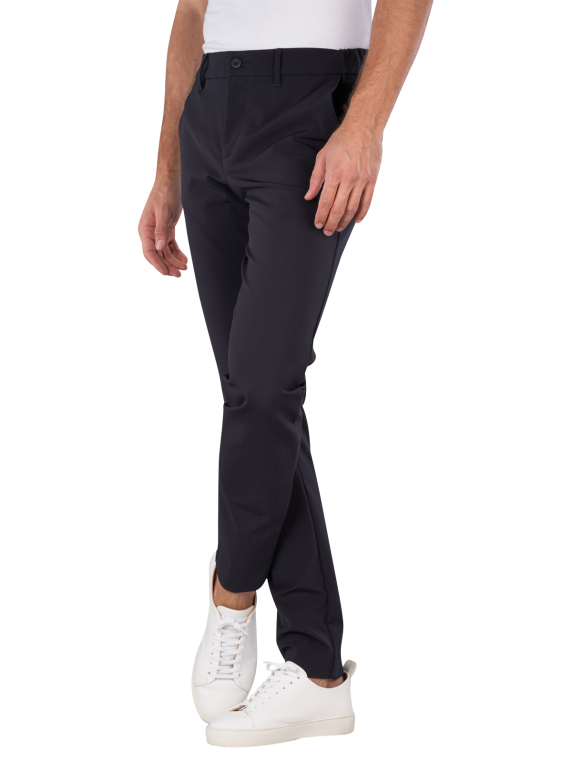 Die Alberto Move Chino Slim Fit in Dunkelblau bietet eine enge, gerade Passform mit mittlerer Bundhöhe. Der Gummizug und der Reissverschluss sorgen für einen bequemen Sitz. Mit einem Stretchanteil ermöglicht diese Chino Bewegungsfreiheit und Komfort. Sie eignet sich für verschiedene Anlässe und lässt sich vielseitig kombinieren. Pflegeleicht im Schonwaschgang bei 30°C, entspricht sie dem OEKO-TEX STANDARD 100.