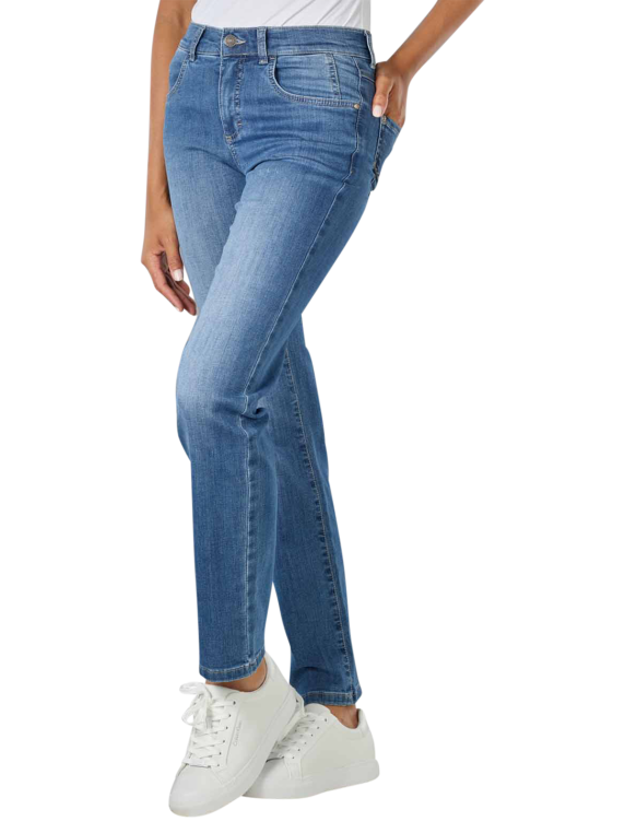 Die Angels Dolly Jeans Sportiv Denim Straight Fit im Farbton Mid Blue Used mit Waschungseffekten bietet einen sportiven 5-Pocket-Look und zaubert mit geradem Bein und hoher Leibhöhe eine tolle Figur. Dank hochwertigem Denim-Stoff mit Stretchanteil überzeugt die Damenjeans zudem mit hervorragendem Tragekomfort und Bewegungsfreiheit. Waschbar bei 30 °C im Schonwaschgang sowie trocknergeeignet ist die Angels Dolly Jeans zudem sehr pflegeleicht.