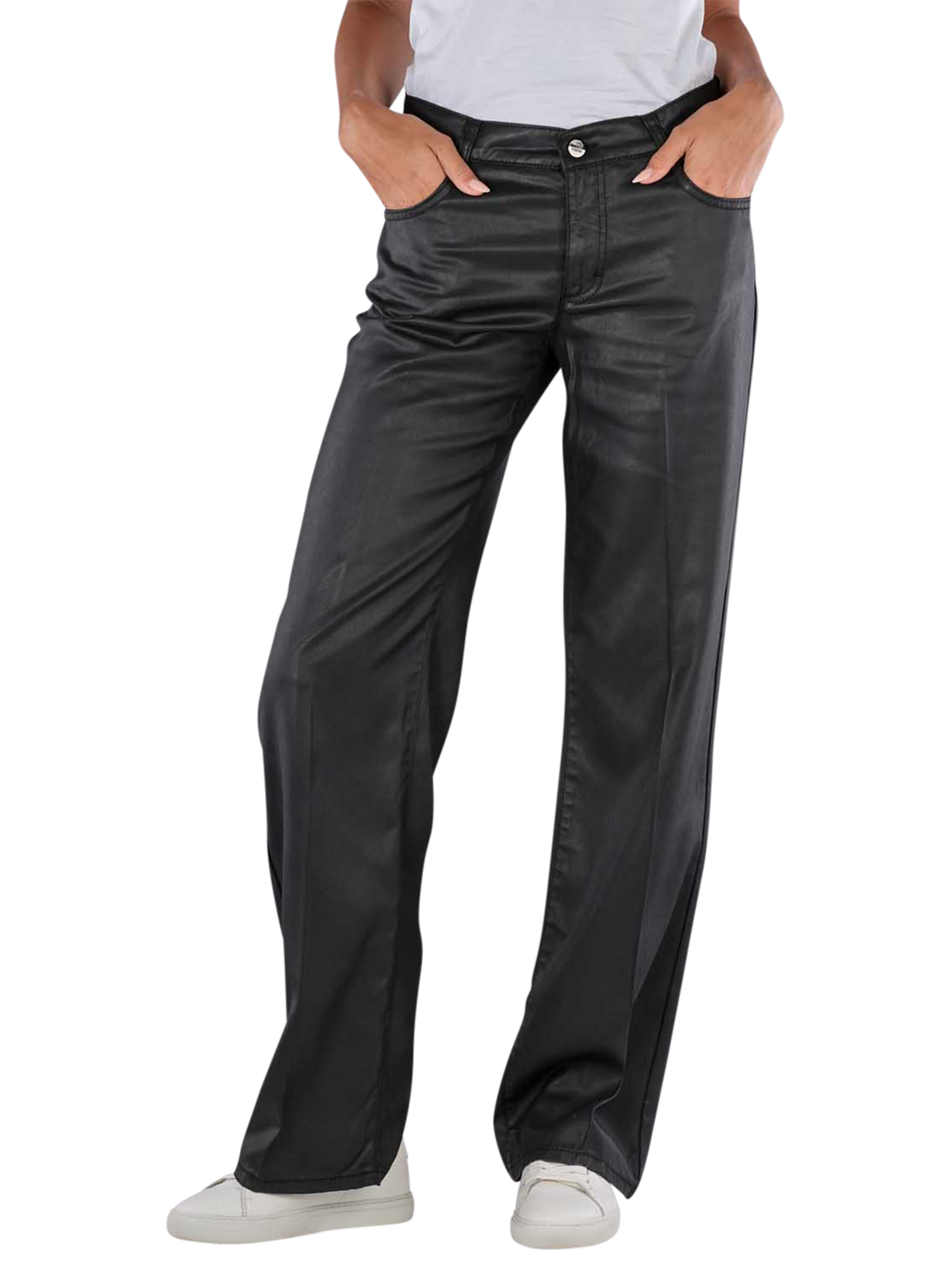 Die Angels Smooth Coating Liz Pants für Frauen vereinen Stil und Komfort. Sie kommen in elegantem Schwarz mit geradem Beinausschnitt und mittlerer Bundhöhe. Die Hosen zeichnen sich durch ihre Wide Leg Passform und die Five-Pocket-Optik aus. Der Stoff aus 100% Lyocell bietet eine Standarddicke ohne Stretchanteil. Verschlossen wird die Hose mit einem Reissverschluss. Pflegeleicht im Schonwaschgang bei 30°C, sollte Bleichen vermieden werden.