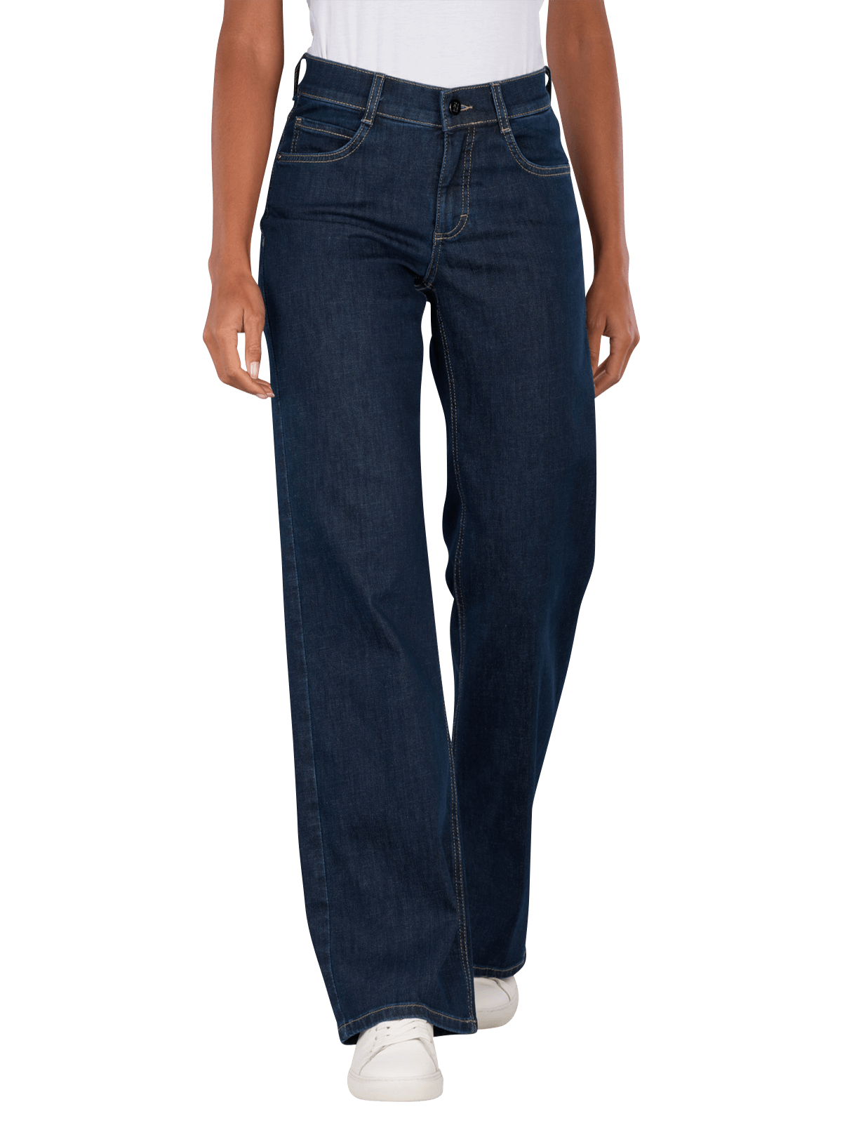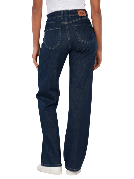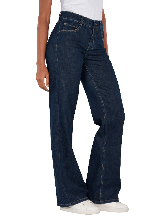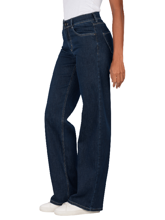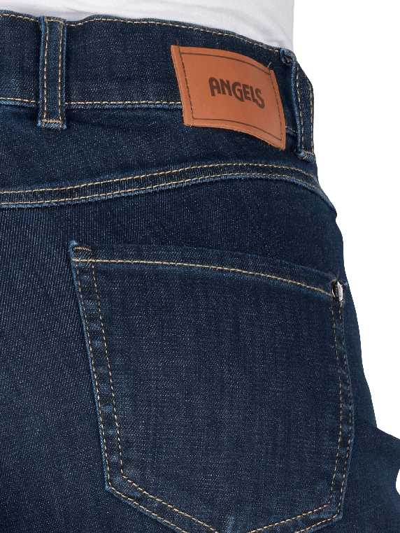 Die Angels Liz Jeans Wide Leg West Coast Denim in Dunkelblau bietet eine gerade und weite Beinform mit mittlerer Bundhöhe. Sie verfügt über einen Reissverschluss und ein klassisches Five-Pocket-Design. Der Stretchanteil sorgt für hohen Tragekomfort und Bewegungsfreiheit. Diese Jeans eignet sich für verschiedene Anlässe und lässt sich vielseitig kombinieren. Pflegehinweis: Schonwaschgang bei 30°C, nicht bleichen. Eco & Fair produziert.