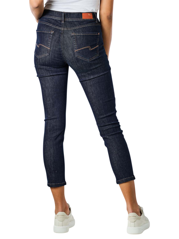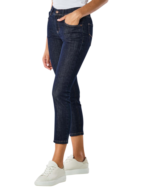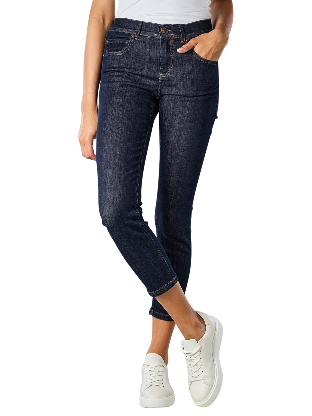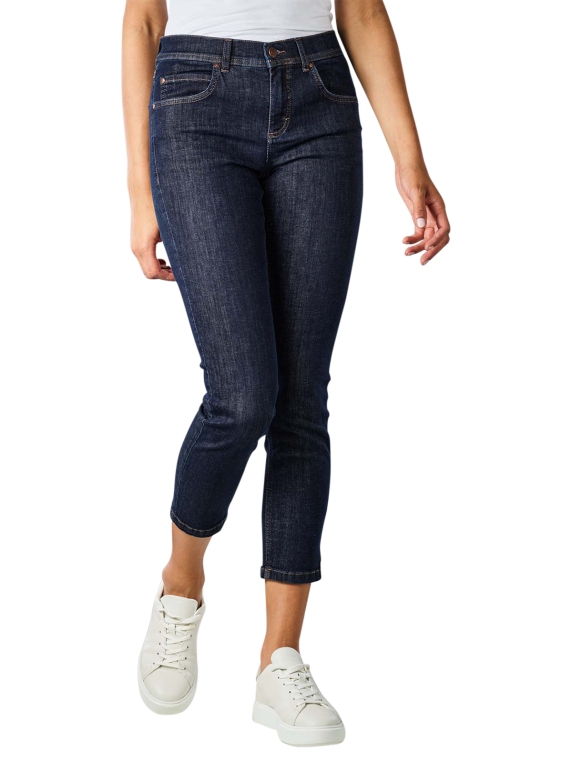 Die Ornealla Slim Fit Jeans von Angels ist eine schmal geschnittene Jeans mit verkürztem Bein. Die dunkelblaue Five-Pocket-Jeans besteht aus sommerlich dünnem Material und wurde aus 91% Baumwolle, 6% Polyester und 3% Elasthan gefertigt. Der Stretch-Anteil sorgt für ein angenehmes Tragegefühl und eine perfekte Passform. Die Jeans hat einen engen Sitz und eine mittlere Bundhöhe.