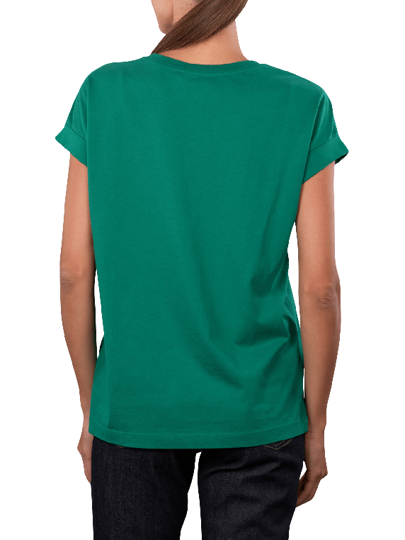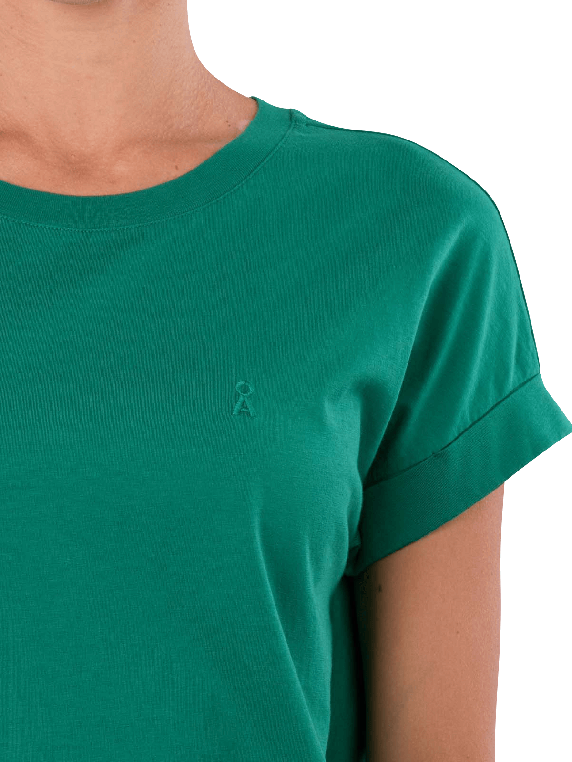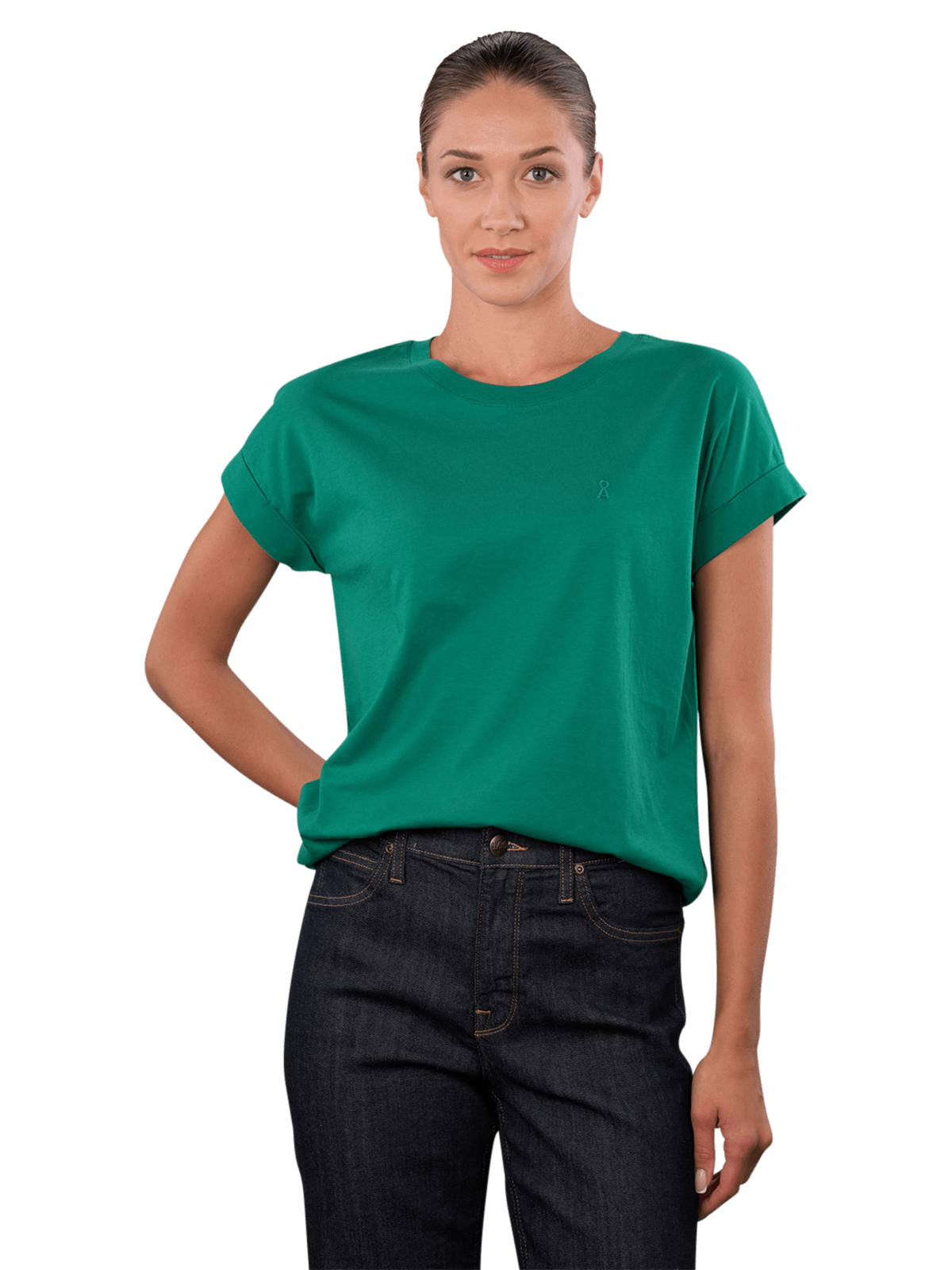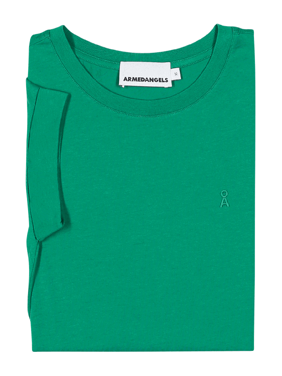 Das Armedangels Idaara T-Shirt in Emerald Green bietet einen Rundhalsausschnitt und kurze Ärmel. Hergestellt aus 100% Bio Baumwolle, erfüllt es die Standards des Global Organic Textile Standard (GOTS). Es eignet sich für umweltbewusste Frauen, die Wert auf nachhaltige Mode legen. Die Pflegeanleitung empfiehlt einen Schonwaschgang bei 30°C und das Nichtbleichen, um die Langlebigkeit des Shirts zu gewährleisten.