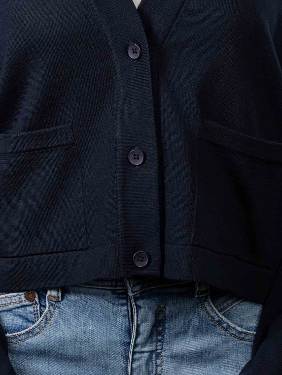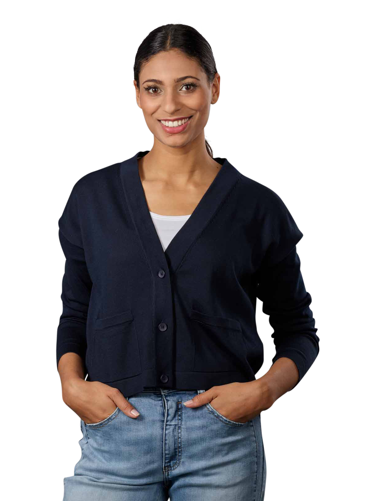 Dieser kleidsame und vielseitig tragbare Armedangels Jaaike Premium Cardigan für Damen wird nach dem Global Organic Textile Standard angefertigt. Das attraktive und pflegeleichte Oberteil in der Farbe Night Sky aus Baumwollstrick mit langem Arm und V-Ausschnitt verfügt über eine Knopfleiste und zwei lässige Taschen in Taillenhöhe. Der unifarbene Cardigan ohne Kapuze macht im Business und bei verschiedenen Freizeitaktivitäten eine gute Figur.