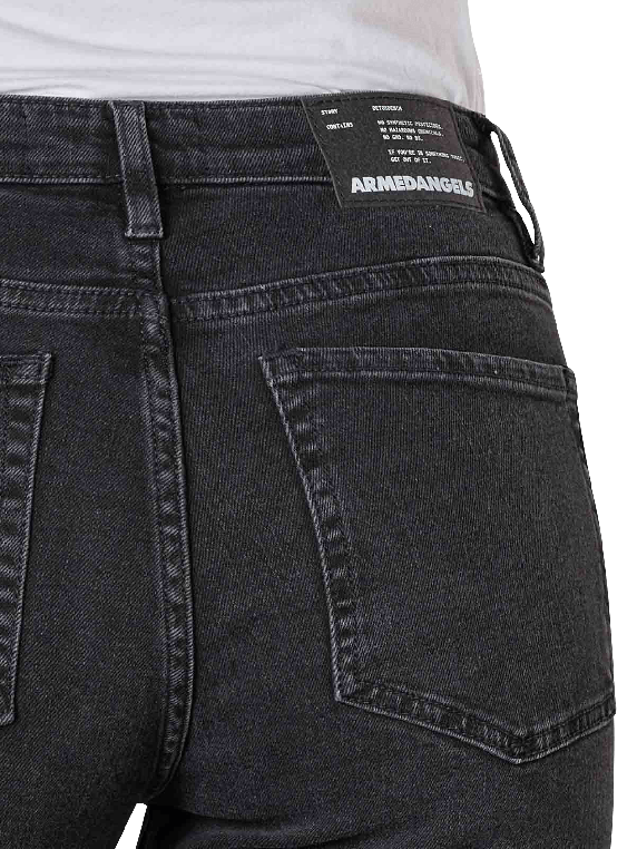 Die Armedangels Mid Waist Anamaa Jeans mit Bootcut trifft den aktuellen Trend perfekt. Sie ist am Fussende breit und verjüngt sich zur Hüfte hin. Letztere umschliesst das Kleidungsstück, wodurch die Vorzüge der Trägerin bestens zur Geltung kommen. Dies ist auch dem Stretchanteil zu verdanken. Hergestellt wurde die Hose im Rahmen des Eco-Programms von Global Organic Textile Standard. Sie besteht also zu 92 % aus Bio-Baumwolle, zu 6 % aus recyceltem Polyester und zu 2 % aus Elasthan.