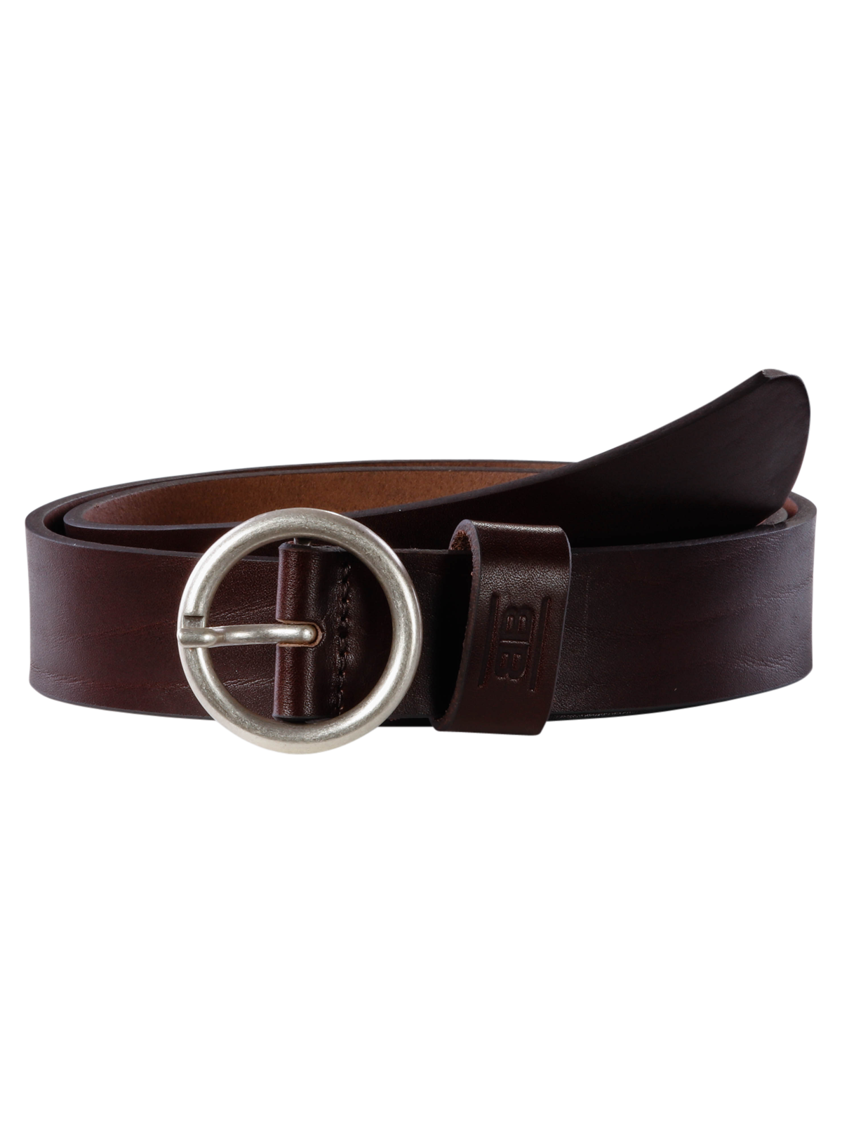 Der Gürtel "Rosie" der Marke BASIC BELTS in der Farbe Dunkelbraun ist aus hochwertig verarbeitetem Echtleder. Mit einer Breite con 35 Millimetern und einer runden silberfarbenem Schnalle, frischt der Gürtel Ihr Outfit auf.