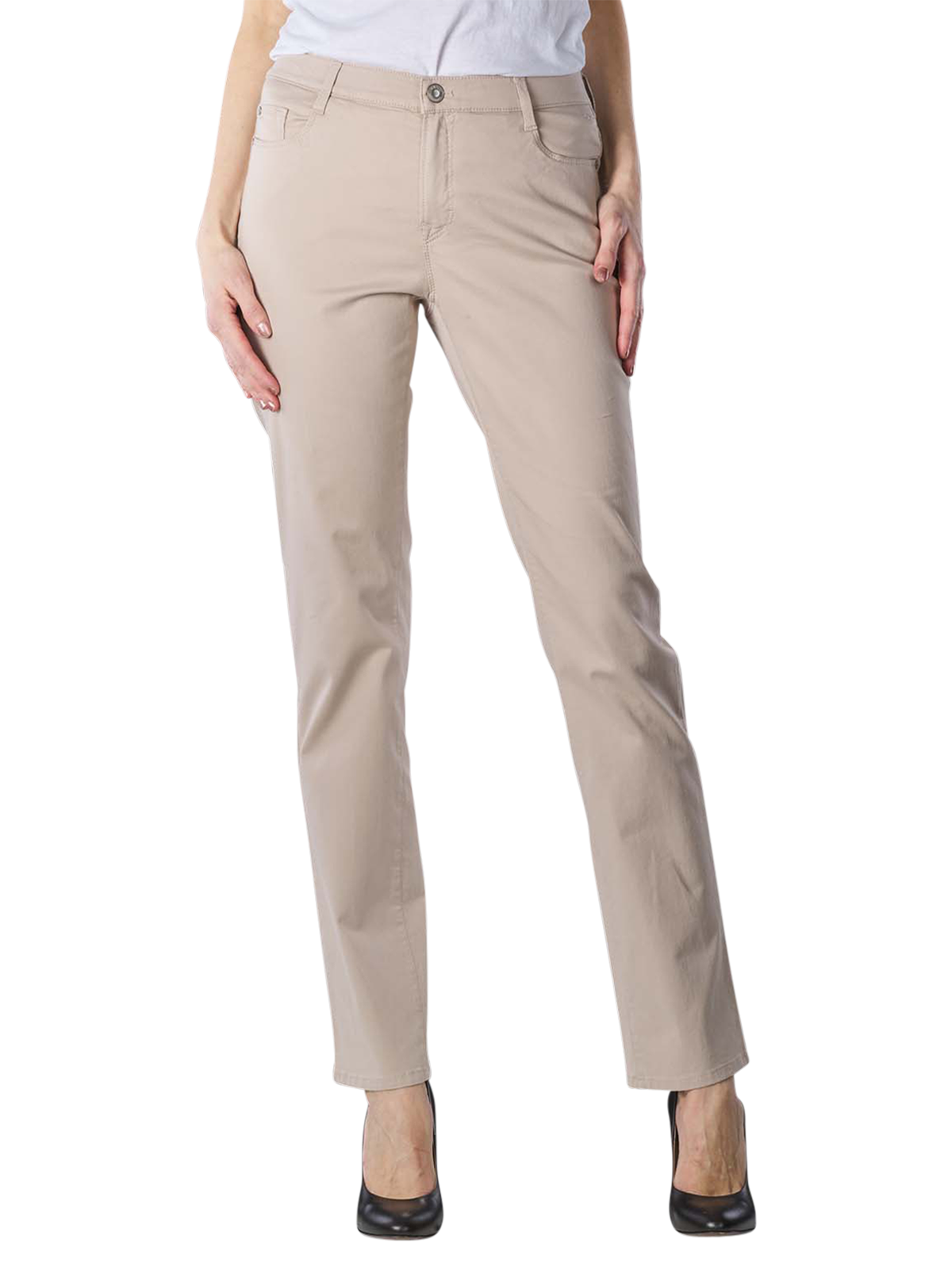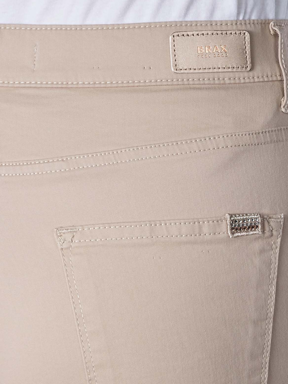 Die Brax Mary Jeans beige bietet durch den soften Baumwollstretch bequemen Tragekomfort. Die Hose ist mit Swarovski-Elementen versehen. Details wie aufgesetzte Gesässtaschen, zusätzliche Coinpocket und die Taschensicherung durch Nieten runden den sportlichen Style ab.