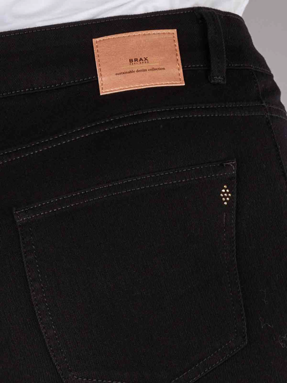 Die Brax Shakira Jeans in Perma Black sind eine Skinny Fit Damenjeans mit hohem Bund und enger Passform. Sie bestehen aus einem Stretch-Materialmix mit Baumwolle, Polyester, Viskose und Elasthan. Diese Five-Pocket-Jeans sind in Schwarz gehalten und verfügen über einen Reissverschluss. Die Stoffdicke ist standard und sie sind für einen Schonwaschgang bei 30°C geeignet. Nicht bleichen. Hinweis: BLUE PLANET.