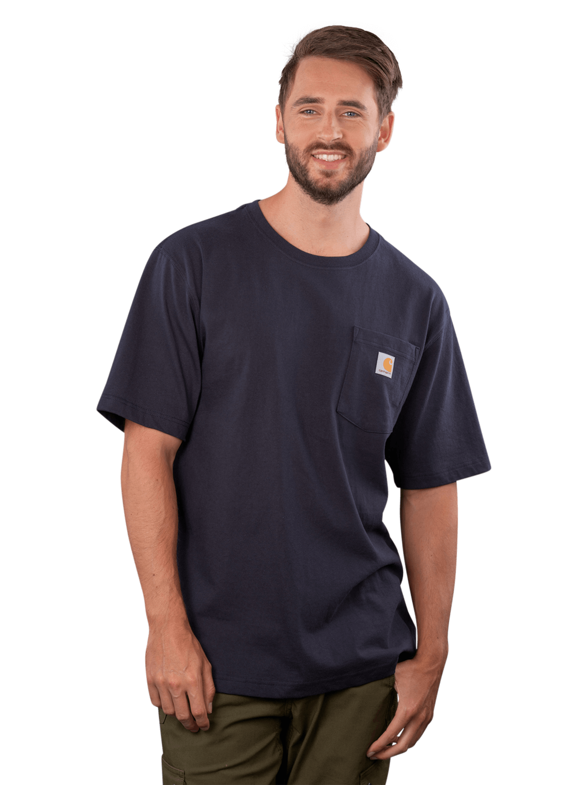 Entdecken Sie das Carhartt Pocket T-Shirt im Loose Fit in stilvollem Navy! Dieses dunkelblaue Herren-T-Shirt aus 100% Baumwolle bietet höchsten Tragekomfort und eine optimale Passform. Der Rundhalsausschnitt und die praktischen Taschen verleihen dem Shirt eine lässige Note. Ideal für den Alltag oder entspannte Wochenenden, ist es pflegeleicht und eignet sich für den Normalwaschgang bei 30°C. Setzen Sie auf Qualität und Stil mit diesem zeitlosen Klassiker von Carhartt!