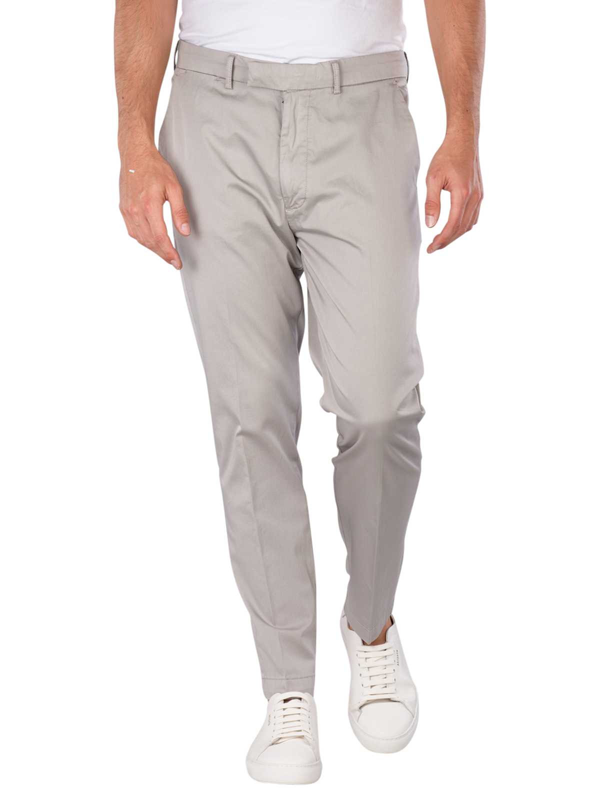 Entdecken Sie die Cinque Cibeppe Chino in Light Grey die perfekte Wahl für stilbewusste Männer! Diese Tapered Fit Hose bietet eine moderne Silhouette mit anliegendem Beinausschnitt und mittelhohem Bund. Der leichte, elastische Stoff aus 98% Baumwolle und 2% Elasthan sorgt für hohen Tragekomfort und Bewegungsfreiheit. Mit Reissverschluss ausgestattet, ist die Chino ideal für Freizeit und Business. Pflegeleicht bei 30°C im Schonwaschgang ein Must-have in jeder Garderobe!