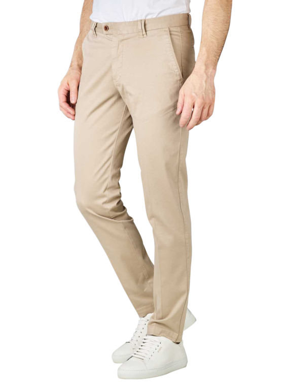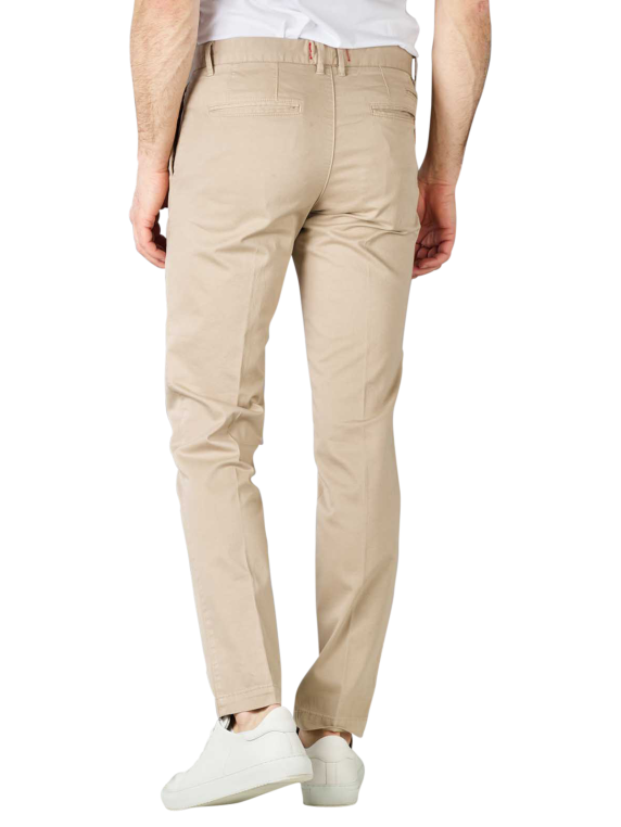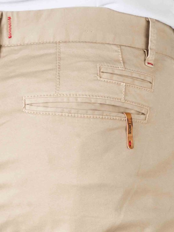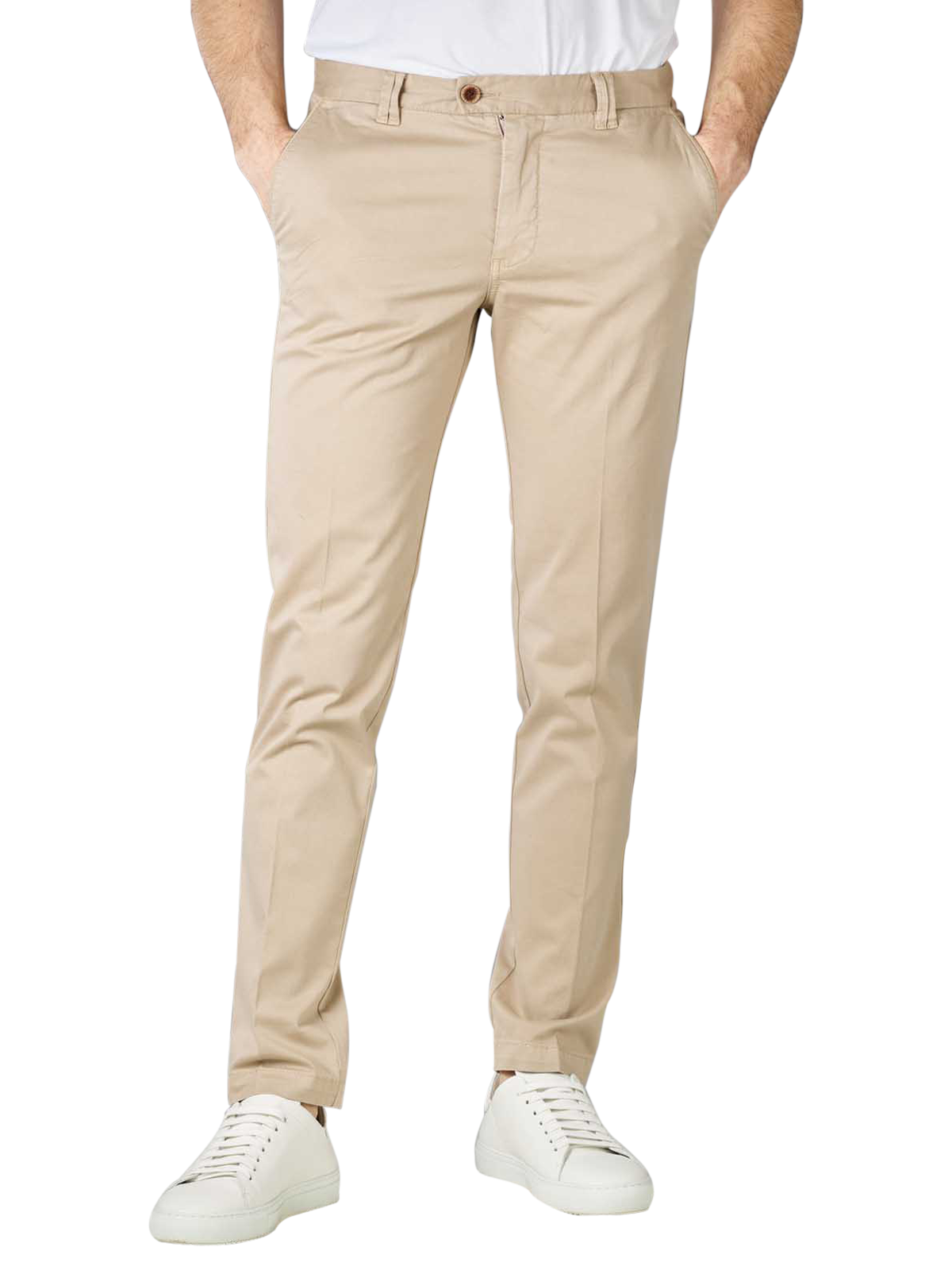 Schlank geschnitten und mit einem engen Bein zeigt sich die Cinque Ciwood 2 Chino Slim Fit. Sie besteht aus Baumwolle mit einem Elasthan-Anteil und wird natürlich einfach in der Maschine gewaschen. Typisch für das Casual Design der Chino sind die versenkten Gesässtaschen sowie die seitlichen Eingrifftaschen. Ein besonderes Detail ist der versetzte Knopf, der nicht direkt über dem Reissverschluss sitzt. Dazu gibt es ein kleines Logo und dezente, rote Ziernähte.
