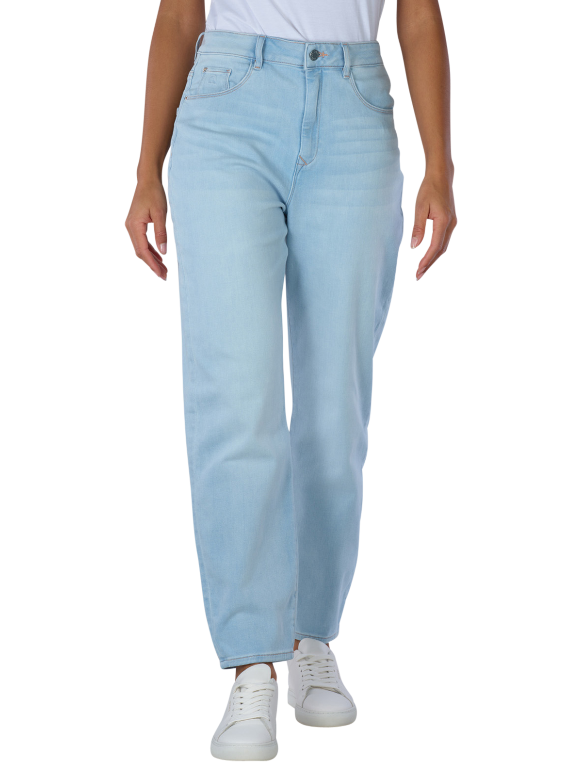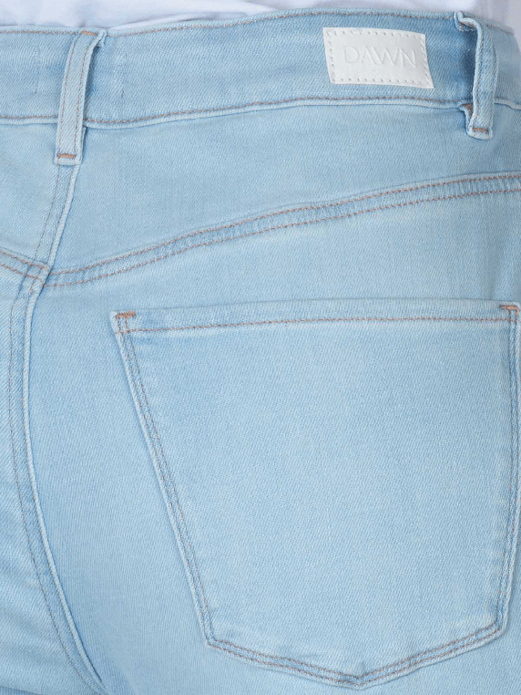 Die Dawn Denim Stardust Jeans in hellem Blau ist perfekt für modebewusste Frauen. Mit einem hohen Bund und eng anliegendem Beinausschnitt bietet sie eine modische Tapered Fit Form. Der dünne Stoff enthält Stretchanteile für optimalen Komfort. Diese Five-Pocket-Jeans mit Reissverschluss besteht aus nachhaltiger Bio-Baumwolle. Die helle Waschung verleiht ihr einen frischen Look. Sie kann im Schonwaschgang bei 30°C gewaschen werden.