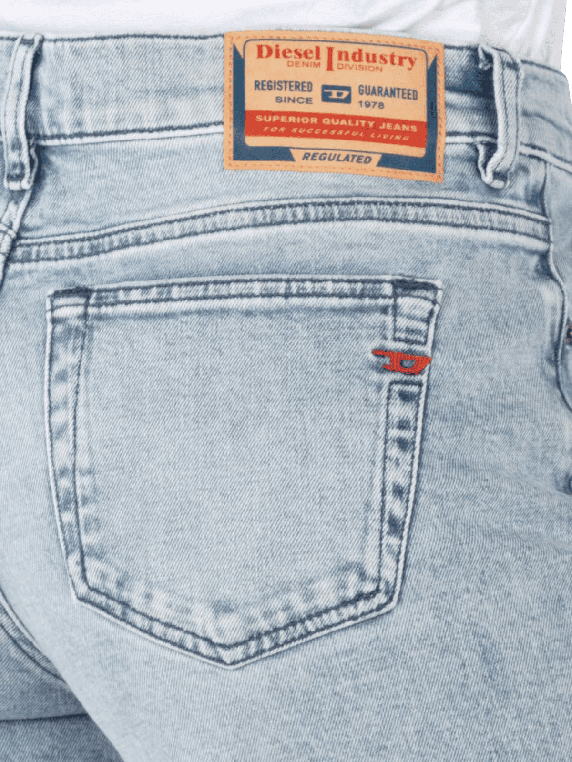 Die Diesel 1978 D-Akemi Jeans Flare in Hellblau bietet einen weiten Beinausschnitt und eine mittelhohe Bundhöhe. Diese Jeans kombiniert eine Bootcut-Passform mit einem klassischen Five-Pocket-Design. Der Stretchanteil sorgt für hohen Tragekomfort und Bewegungsfreiheit. Sie eignet sich für verschiedene Anlässe und lässt sich vielseitig kombinieren. Pflegehinweis: Schonwaschgang bei 30°C, nicht bleichen.