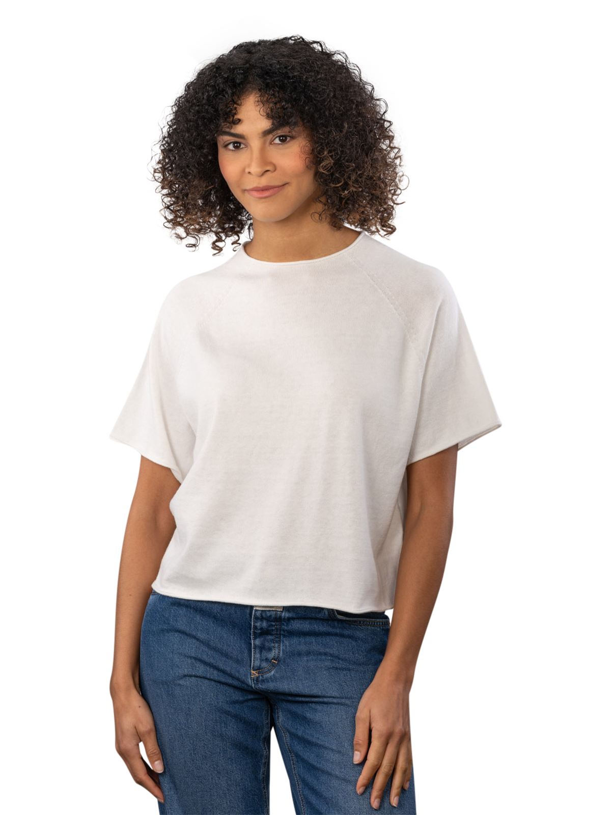 Das Drykorn Moeny T-Shirt in Offwhite bietet einen Rundhalsausschnitt und kurze Ärmel. Es ist aus einer hochwertigen Baumwoll-Kaschmir-Mischung gefertigt, die für ein angenehmes Tragegefühl sorgt. Die Pflegehinweise empfehlen Handwäsche und das Vermeiden von Bleichmitteln. Dieses T-Shirt eignet sich für vielseitige Kombinationen und kann sowohl lässig als auch elegant gestylt werden.