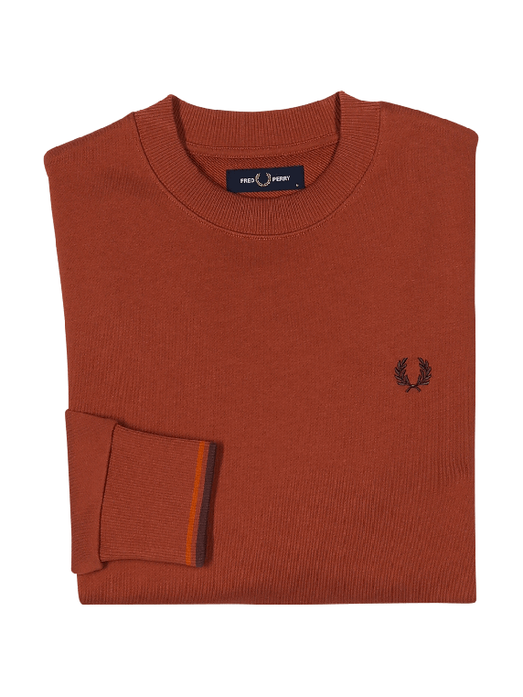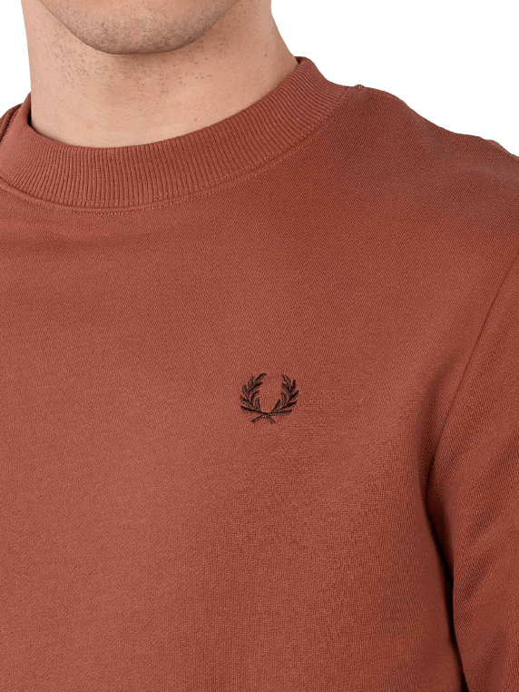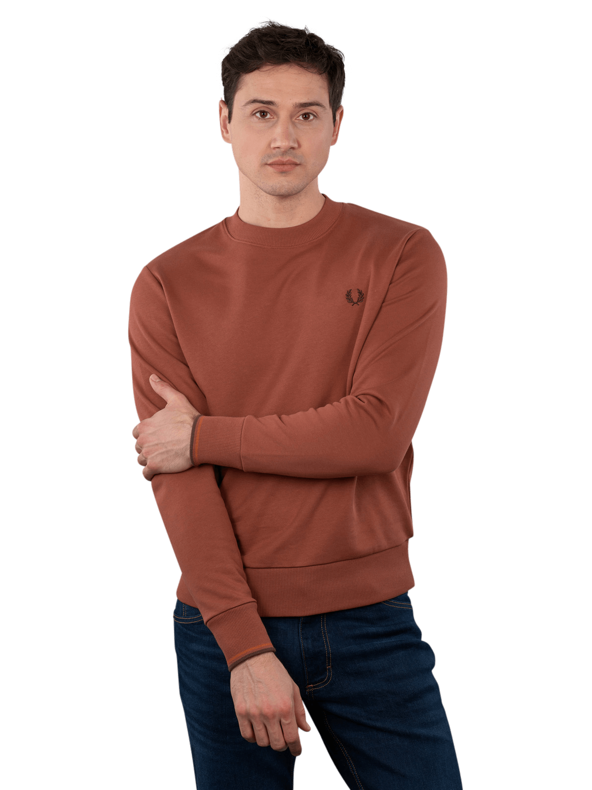 Das Fred Perry Crew Neck Sweatshirt in der warmen Farbe Cinnamon vereint Stil und Komfort für modebewusste Männer. Der Rundhalsausschnitt sorgt für eine klassische Silhouette, während der hochwertige Baumwollstoff ein angenehmes Tragegefühl garantiert. Ohne Kapuze ist es vielseitig kombinierbar und ideal für lässige Anlässe. Pflegeleicht und bei 40°C normalwaschbar, bleibt das Sweatshirt auch nach häufigem Tragen in hervorragendem Zustand. Ein Must-Have für jede Garderobe!