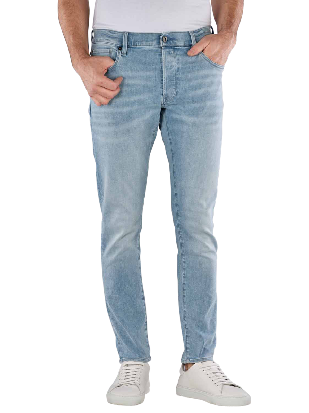 Die G-Star 3301 Jeans Slim Light Aged ist eine stilvolle Wahl für Männer. Mit ihrem engen Beinausschnitt und der mittleren Bundhöhe bietet sie dank ihrer Slim Fit Passform und dem Stretchanteil optimalen Tragekomfort. Die Jeans in hellblauer Farbgebung und heller Waschung begeistert durch ihre Five-Pocket-Design und Knopfleiste. Gefertigt aus 92% Baumwolle, 7% Elastomultiester und 1% Elasthan, bleibt sie auch nach einem normalen 30°C-Waschgang in Form.