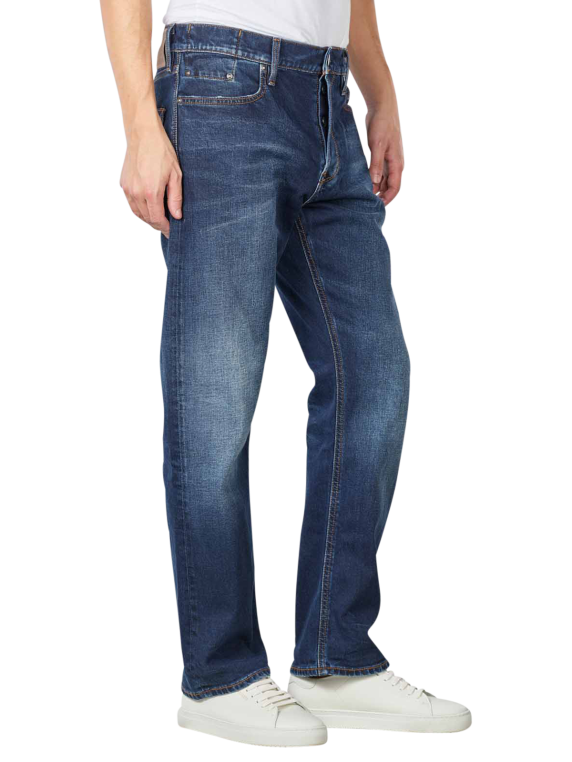 Die Hose für Herren verfügt über eine Knopfleiste. Darüber kann die Hose schnell und sicher verschlossen werden. Die Oberschenkel der Hose sind gerade geschnitten. Die Beinausschnitte sind gerade und weit gewählt. Der hohe Baumwollanteil sorgt dafür, dass die Jeans pflegeleicht ist. Dadurch kann sie bei mässig heissen Temperaturen von bis zu 150 Grad gebügelt werden. Der Schonwaschang wird empfohlen.