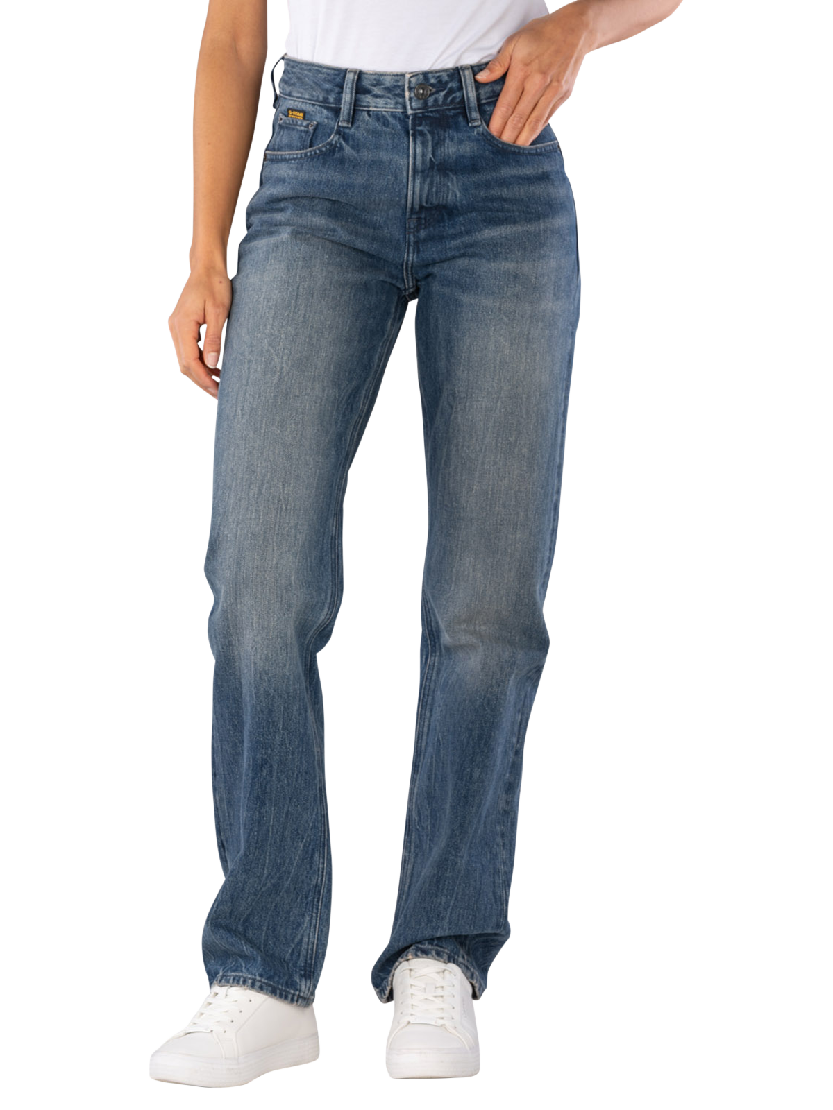 Die G-Star Iggie Jeans Straight Fit Worn In Mountain Dusk bietet eine gerade Passform mit mittlerer Bundhöhe. Sie ist in einem mittleren Blau gehalten und besteht aus 100% Baumwolle ohne Stretchanteil. Diese Five-Pocket-Jeans verfügt über einen Reißverschluss und ist für den normalen Waschgang bei 30°C geeignet. Die mittlere Waschung sorgt für einen lässigen Look, während die robuste Baumwolle Langlebigkeit garantiert.
