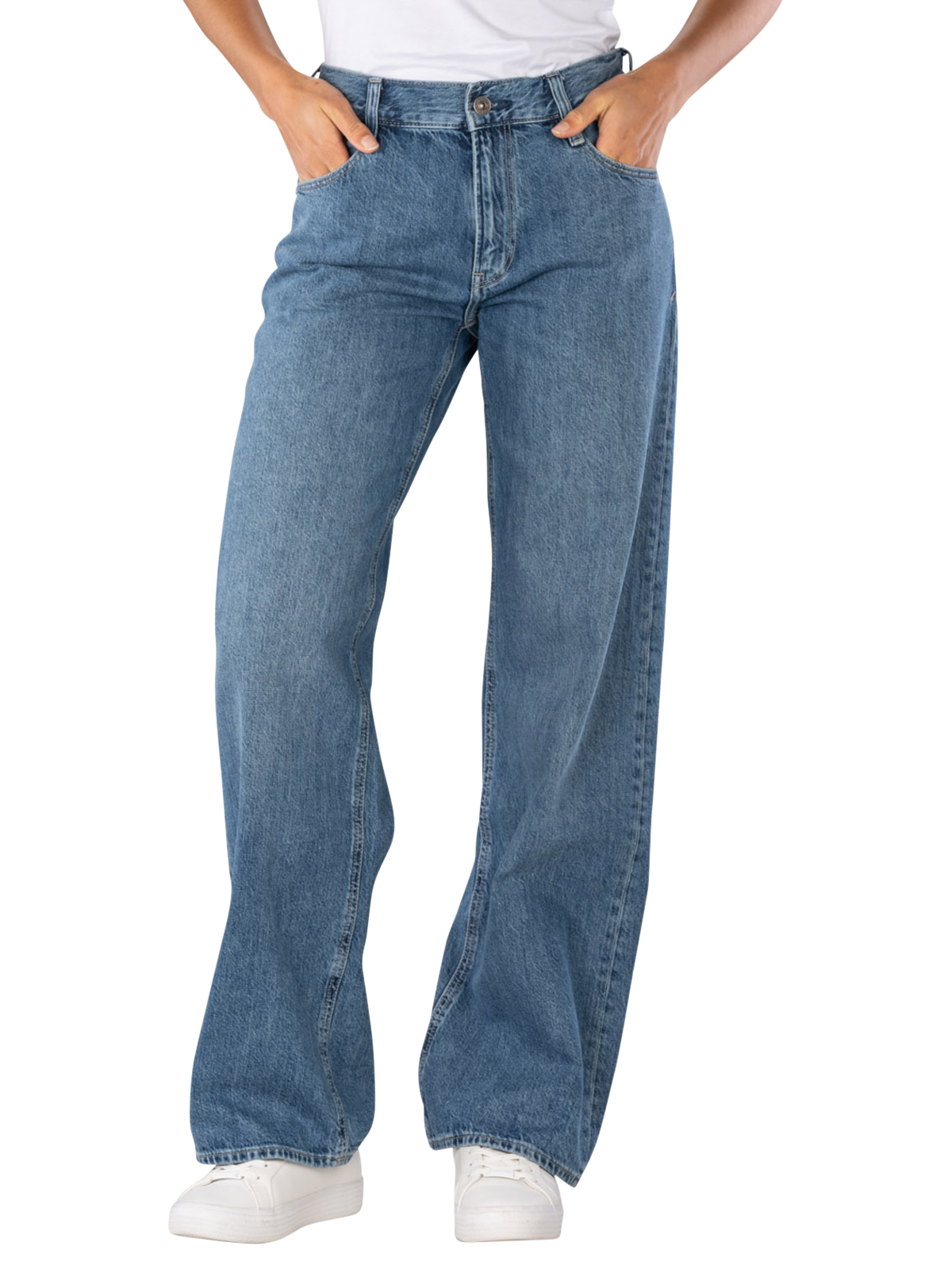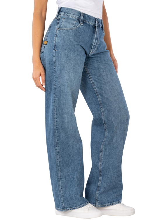 Die G-Star Judee Jeans Loose Fit Faded Blue Glacier bietet einen geraden und weiten Beinausschnitt sowie eine mittlere Bundhöhe. Diese Jeans in Mittelblau ist für Frauen konzipiert und zeichnet sich durch eine Five-Pocket-Optik aus. Der Reißverschluss sorgt für einen einfachen Einstieg. Die Jeans ist aus 100% Baumwolle gefertigt und eignet sich für den normalen Waschgang bei 30°C. Sie kombiniert Komfort mit einem lässigen Look.