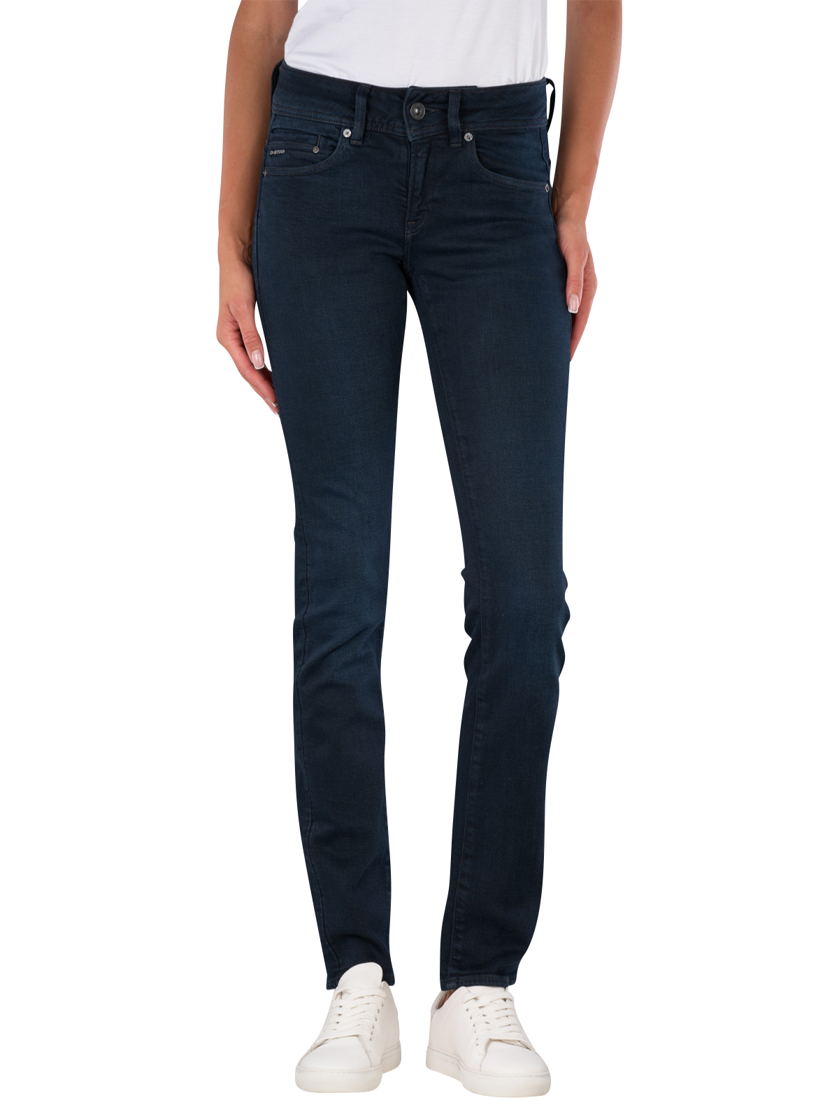 Die G-Star Midge Jeans Slim Straight Fit Rinsed Ink Blue bietet eine gerade Beinform und mittlere Bundhöhe. Sie ist in einem dunklen Blau gehalten und verfügt über einen praktischen Reißverschluss. Mit ihrem Stretchanteil sorgt sie für Bewegungsfreiheit und Komfort. Diese Jeans eignet sich für verschiedene Anlässe und lässt sich vielseitig kombinieren. Pflegehinweis: Normalwaschgang bei 30°C, nicht bleichen.