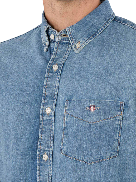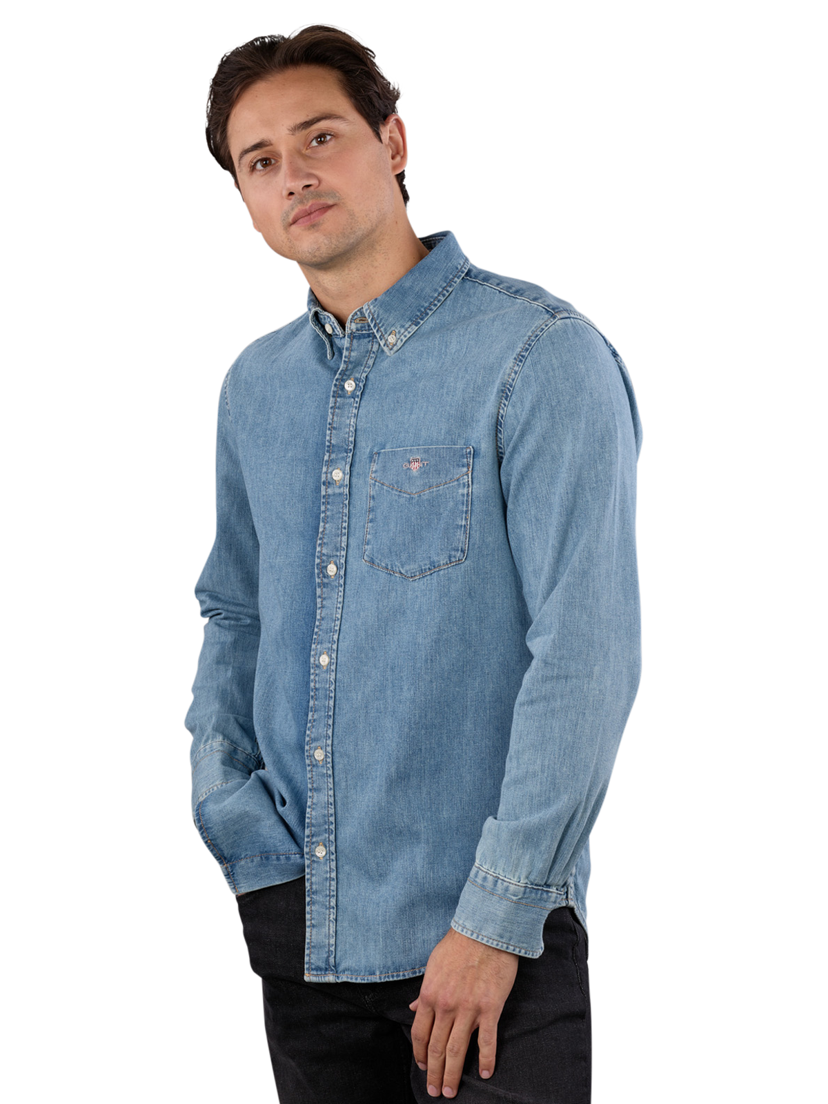 Das Gant Regular Denim Shirt für Männer in Semi Light Blue kombiniert lässigen Stil mit klassischem Design. Es verfügt über langärmelige Button-down-Kragen, ist aus 100% Baumwolle gefertigt und angenehm zu tragen. Die pflegeleichte Qualität erlaubt einen Normalwaschgang bei 40 Grad ohne Bleichmittel. Ideal für den Alltag, überzeugt das Hemd durch seine robuste Verarbeitung und den modischen Hellblau-Ton.