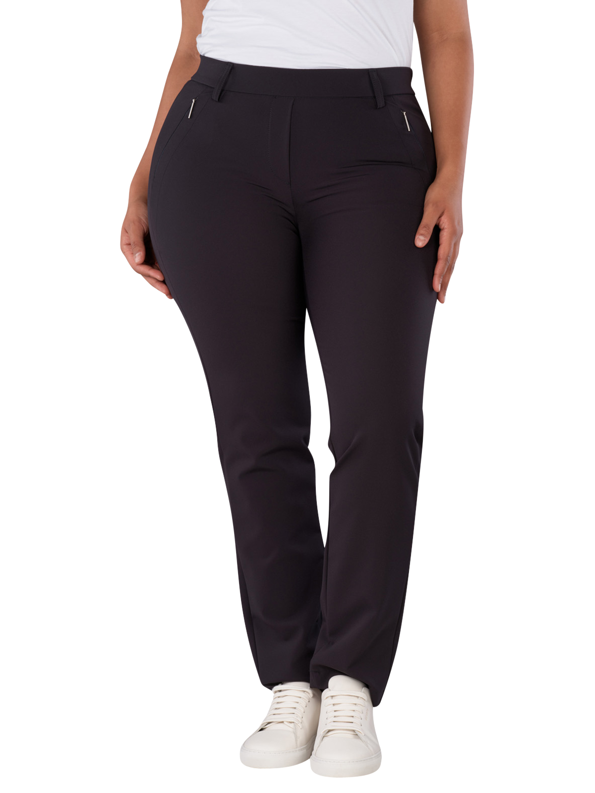 Die Gardeur Zene-57 Chino Plus Size Slim Fit in Marine bietet eine gerade Beinausschnitt und eine mittlere Bundhöhe. Diese Chinohose für Frauen kombiniert einen bequemen Gummizugverschluss mit einer Slim Fit Passform, die eine moderne Silhouette schafft. Sie eignet sich für verschiedene Anlässe und lässt sich vielseitig kombinieren, wodurch sie eine praktische Ergänzung für Ihre Garderobe darstellt.
