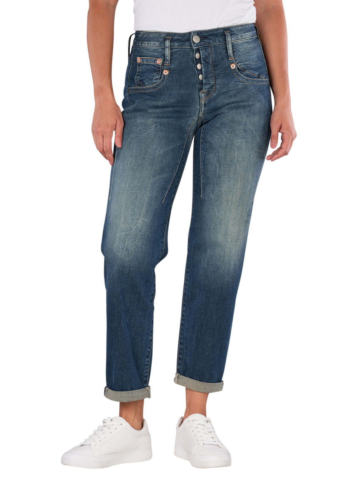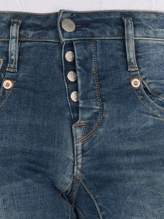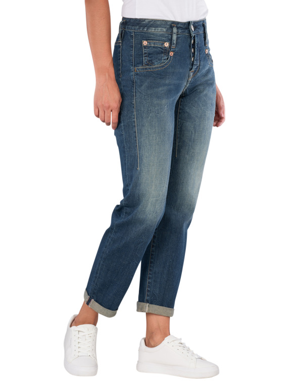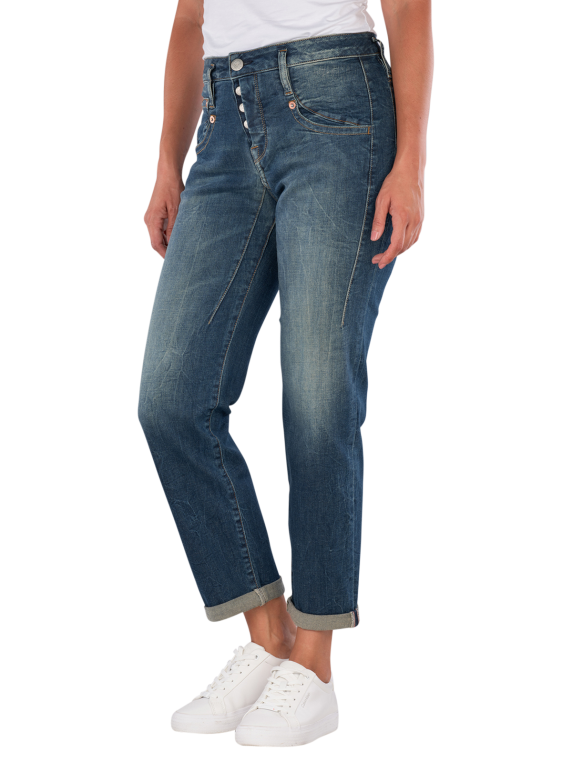 Die Herrlicher Shyra Tap Jeans Boyfriend bietet einen entspannten Schnitt mit mittlerer Bundhöhe und einem engen bis geraden Beinausschnitt. Sie ist aus einem bequemen Stretchmaterial gefertigt, das Bewegungsfreiheit ermöglicht. Die Jeans verfügt über eine klassische Five-Pocket-Optik und einen Knopfleistenverschluss. Die mittlere Waschung verleiht ihr einen zeitlosen Look, der vielseitig kombinierbar ist.
