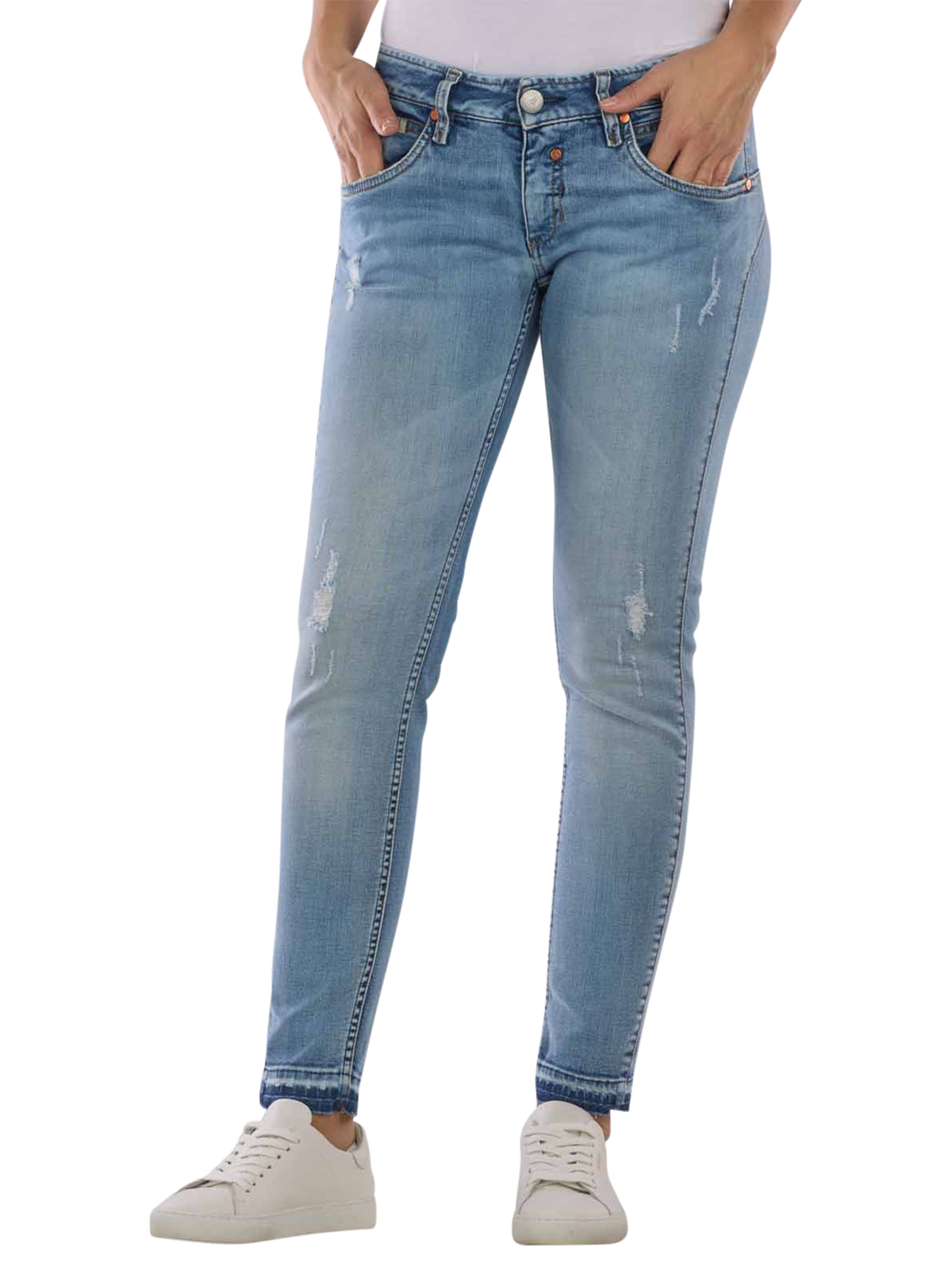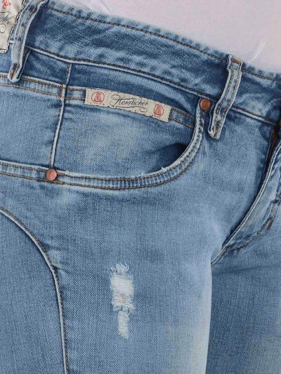 Die Touch Destroyed Jeans Cropped Slim Fit von Herrlicher überzeugt mit perfekter Passform und einem angesagten Used-Look. Die Waschung der klassischen 5-Pocket-Jeans ist am Gesäss und an den Oberschenkeln besonders hell und die Kontrastnähte betonen die Stellen noch zusätzlich. Ein besonderer Hingucker ist die Optik eines mehrfach ausgelassenen Saumes an den Beinenden.