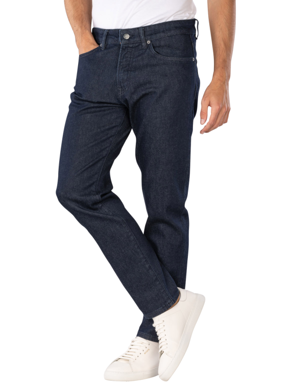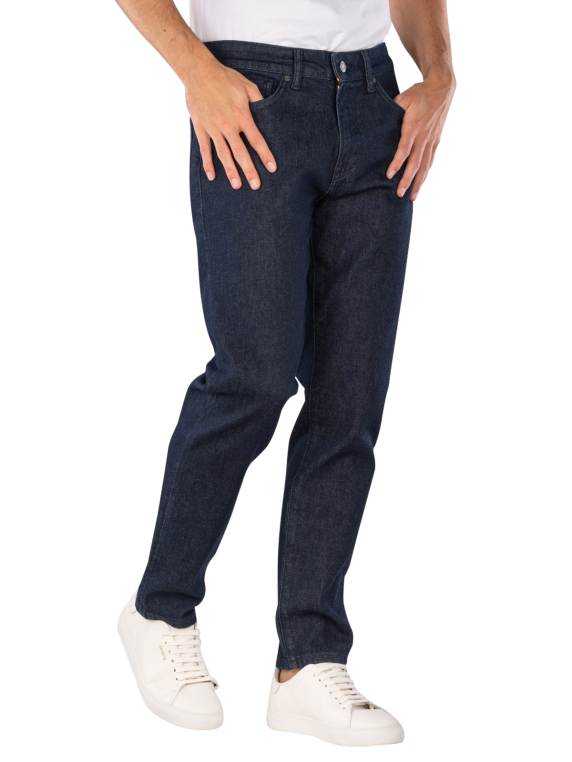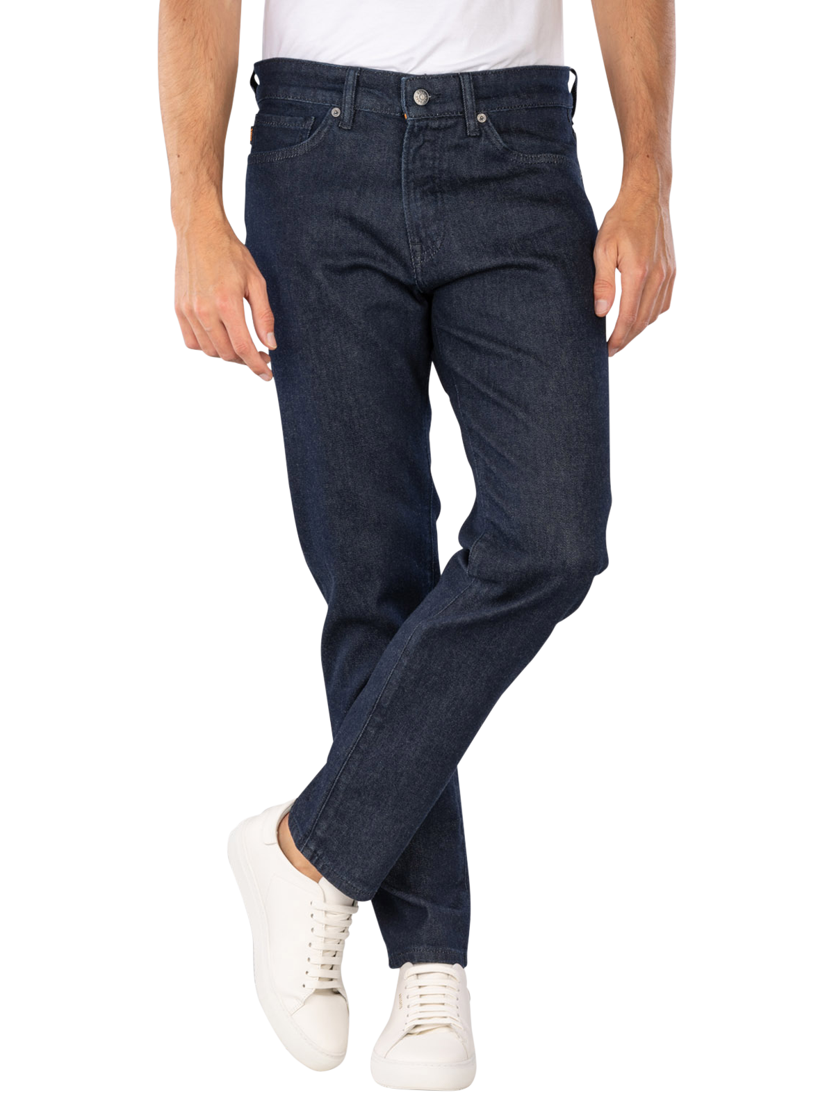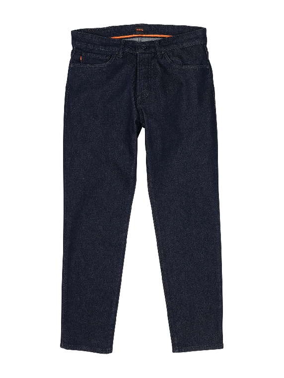 Die Boss Orange Re Maine Jeans Regular Fit in Dunkelblau bietet eine mittlere Bundhöhe und einen tapered Fit für eine moderne Silhouette. Der Five-Pocket-Stil sorgt für praktischen Stauraum. Mit einem Reißverschluss ausgestattet, ist sie einfach zu handhaben. Der dünnere Stoff mit Stretchanteil gewährleistet Bewegungsfreiheit und Komfort. Diese Jeans eignet sich für verschiedene Anlässe und lässt sich vielseitig kombinieren.