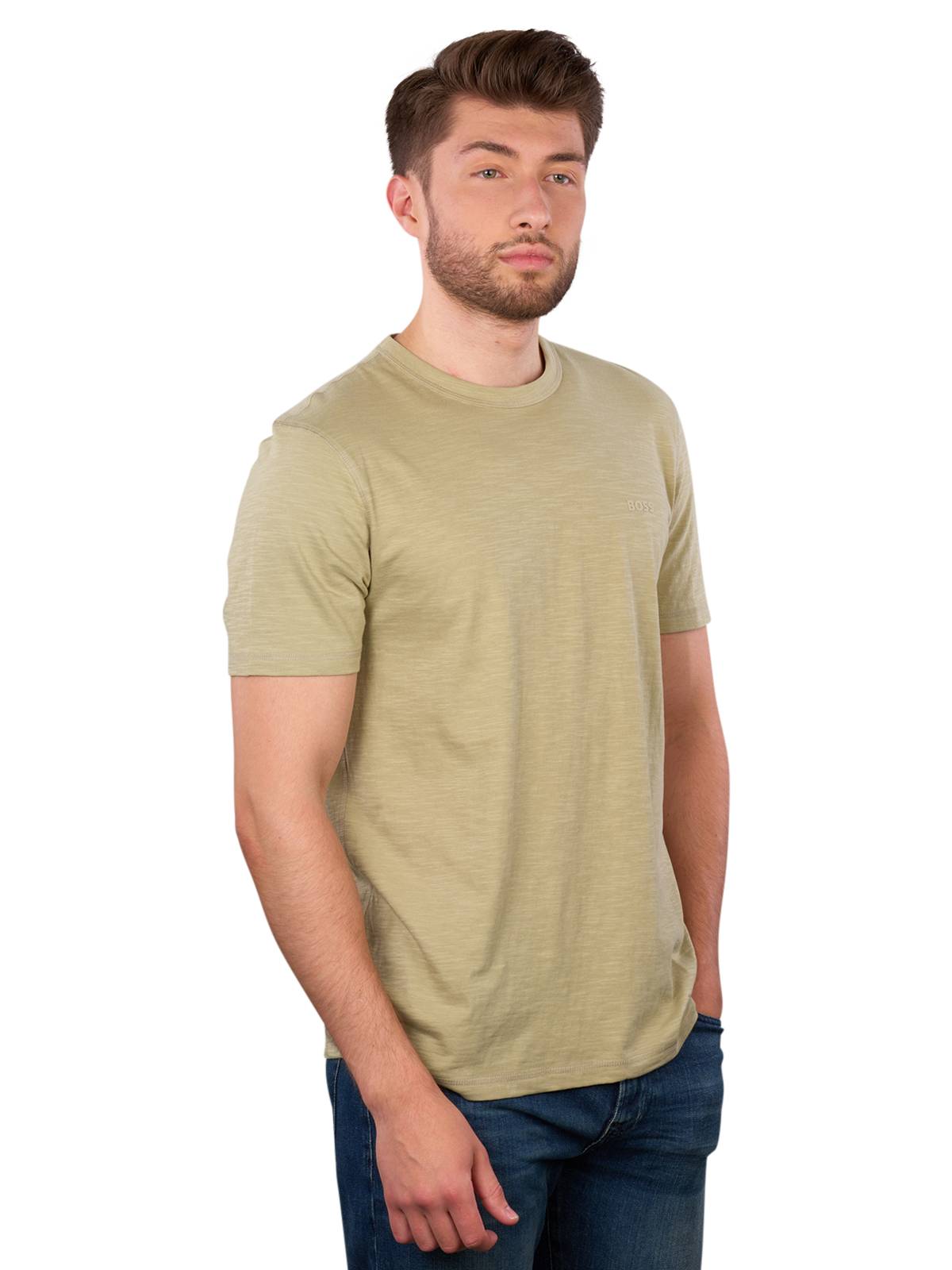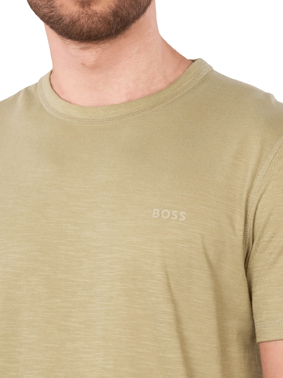 Das Boss Orange Tegood T-Shirt in offener grüner Farbe bietet einen klassischen Rundhalsausschnitt und ist aus 100% Baumwolle gefertigt. Es eignet sich ideal für lässige Anlässe und kann problemlos bei 40°C im Schonwaschgang gewaschen werden. Die Pflegehinweise empfehlen kein Bleichen, was die Langlebigkeit des Shirts unterstützt. Dieses T-Shirt kombiniert Komfort mit einem zeitlosen Design, das sich vielseitig kombinieren lässt.