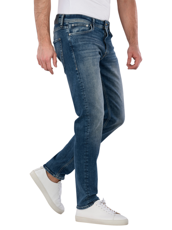 Entdecken Sie die Jack & Jones Mike Jeans in klassischem mittelblauem Denim. Diese Herrenjeans bietet durch den Comfort Tapered Fit eine entspannte Passform, die optimalen Tragekomfort gewährleistet. Mit einem geraden Beinausschnitt und mittlerer Bundhöhe ist sie vielseitig kombinierbar. Der Stretchanteil sorgt für zusätzliche Beweglichkeit, während die robuste Verarbeitung aus 98% Baumwolle und 2% Elasthan Langlebigkeit garantiert. Das praktische Five-Pocket-Design und der individuell verstellbare Knopfverschluss runden das Gesamtbild ab. Ideal für jeden Anlass!