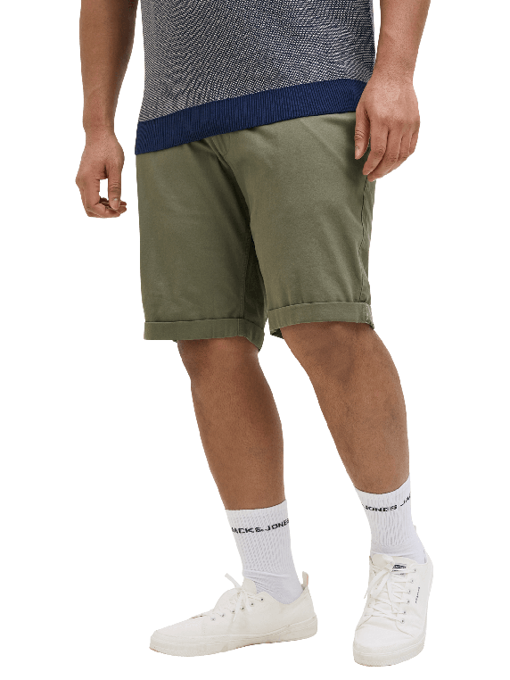 Entdecken Sie die Jack & Jones PLS Dave Chino Shorts in der trendigen Farbe Dusty Olive. Diese Regular Fit Shorts bieten nicht nur einen lässigen Look, sondern auch hervorragenden Tragekomfort dank des hochwertigen, dünnen Stoffes mit Stretchanteil. Der praktische Reissverschluss sorgt für eine einfache Handhabung. Die Shorts bestehen aus 98% Baumwolle und 2% Elasthan, was sie besonders bequem macht. Perfekt für warme Sommertage einfach bei 40°C im Normalwaschgang waschbar!