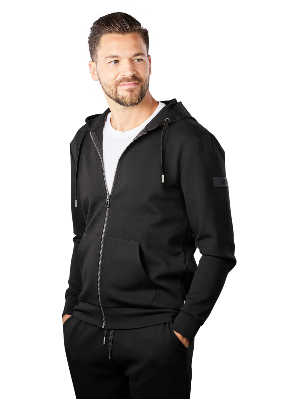 Diese lässige und hochwertig verarbeitete Joop Stratos Hoodie Zip Jacket für den modernen Mann ist ein bequemes Kleidungsstück für verschiedene Aktivitäten in der Freizeit. Die Sweatjacke mit Kapuze in der Farbe Black verfügt über zwei geräumige Taschen im Vorderteil. Die Jacke ist aus einem pflegeleichten und komfortablen Fasergemisch aus Viskose, Elasthan und Polyester hergestellt. Das Logo Joop ist dezent sichtbar.