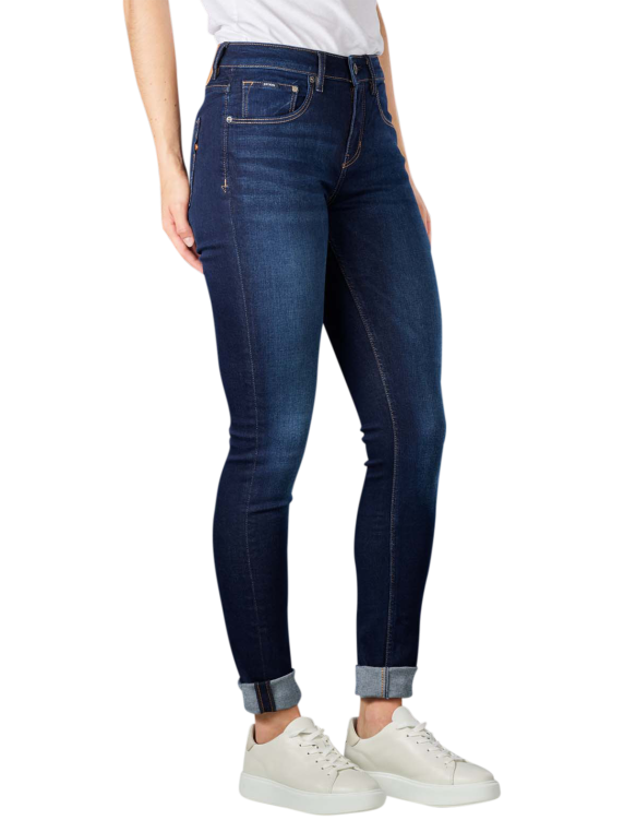Die figurbetonte Skinny Fit Jeans aus dem Hause Kuyichi Carey zeichnet sich durch ihren mittelhohen Bund und einer perfekten Passform aus. Neben zwei vorderen Taschen besitzt die Five-Pocket Jeans zwei aufgesetzte Taschen im Gesässbereich. Die Nähte der Skinny Jeans heben sich durch ihre helle Farbgebung deutlich vom restlichen Teil der Jeans ab und verleihen ihr somit einen absoluten Hingucker. Besonders auffällig ist zudem das hellbraune Logo-Patch im hinteren Bundbereich, der aus Jacron-Papier hergestellt wird,