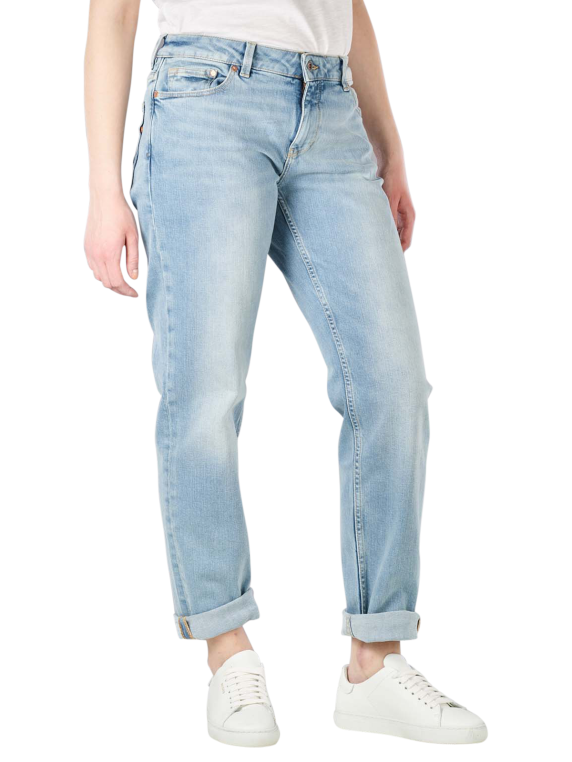 Die Kuyichi Jenna ist eine Boyfriendjeans für Damen. Sie besteht aus 79% Bio-Baumwolle, 20% recycelte Baumwolle und 1% Elasthan und gehört aufgrund ihrer Nachhaltigkeit zum ECO Programm Bio-Baumwolle. Die Five-Pocket Jeans kann im Normalwaschgang bei 30°C gewaschen werden, sollte allerdings nicht im Trommeltrockner getrocknet werden. Durch den geraden Oberschenkelschnitt fällt die Hose besonders locker aus, was sie besonders bequem macht.