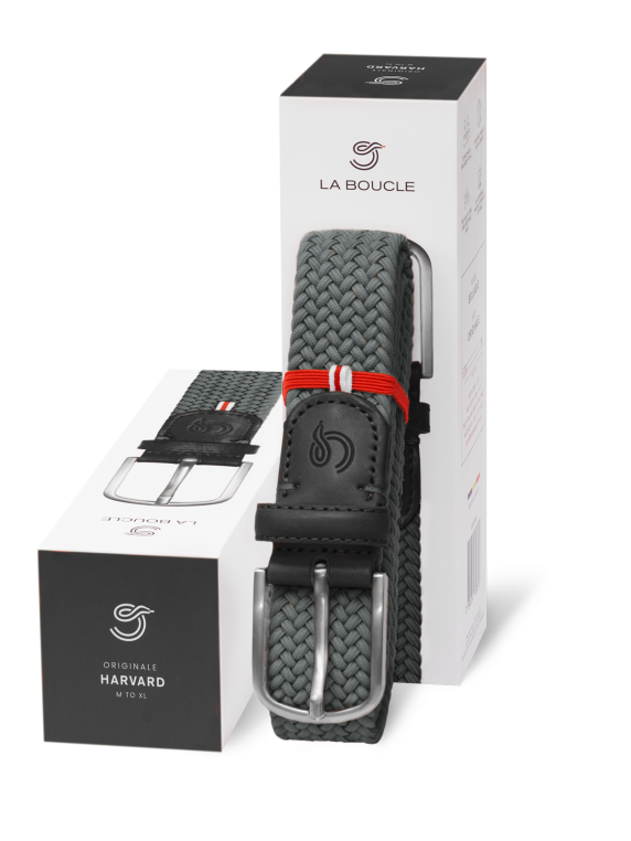 Der La Boucle Harvard Belt Super Stretch in der Koloration Asphalt Grey ist ein dunkler Herren-Gürtel, der zu heller Casual- und Businessmode ansprechende Kontraste schafft. Sein Anblick fasziniert vor allem durch das geflochtene Design und das aus vegetabil gegerbtem Leder gefertigte Endstück mit dezentem Logo-Print. Besonders hervorzuheben ist der hohe Komfort des sehr dehnbaren und pflegeleichten Gürtels für anspruchsvolle Männer.