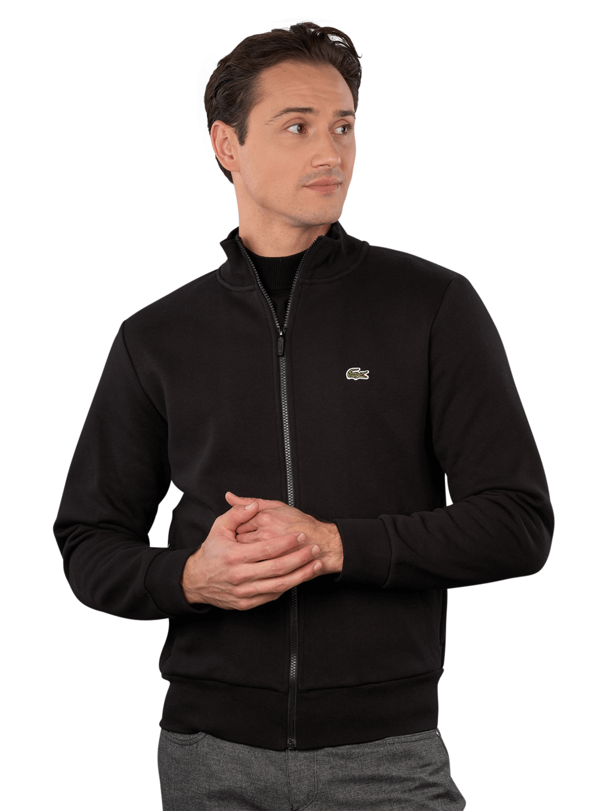 Die Lacoste Jacket Zip Sweat Stand Up Collar in Schwarz bietet einen modernen Look mit einem praktischen Reißverschluss. Sie verfügt über einen Stehkragen, der zusätzlichen Schutz bietet. Diese Jacke ist für Männer konzipiert und eignet sich hervorragend für entspannte Freizeitaktivitäten. Sie lässt sich leicht bei 30°C im Normalwaschgang reinigen und ist eine vielseitige Ergänzung für Ihre Garderobe.