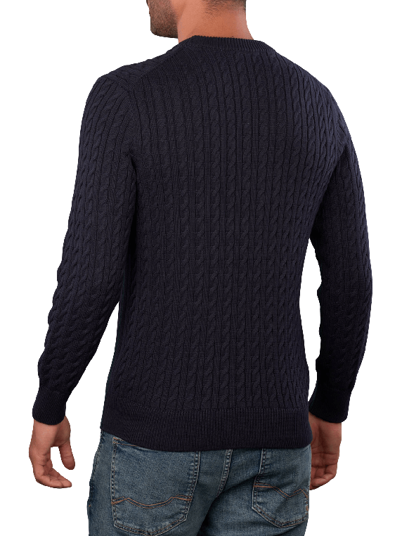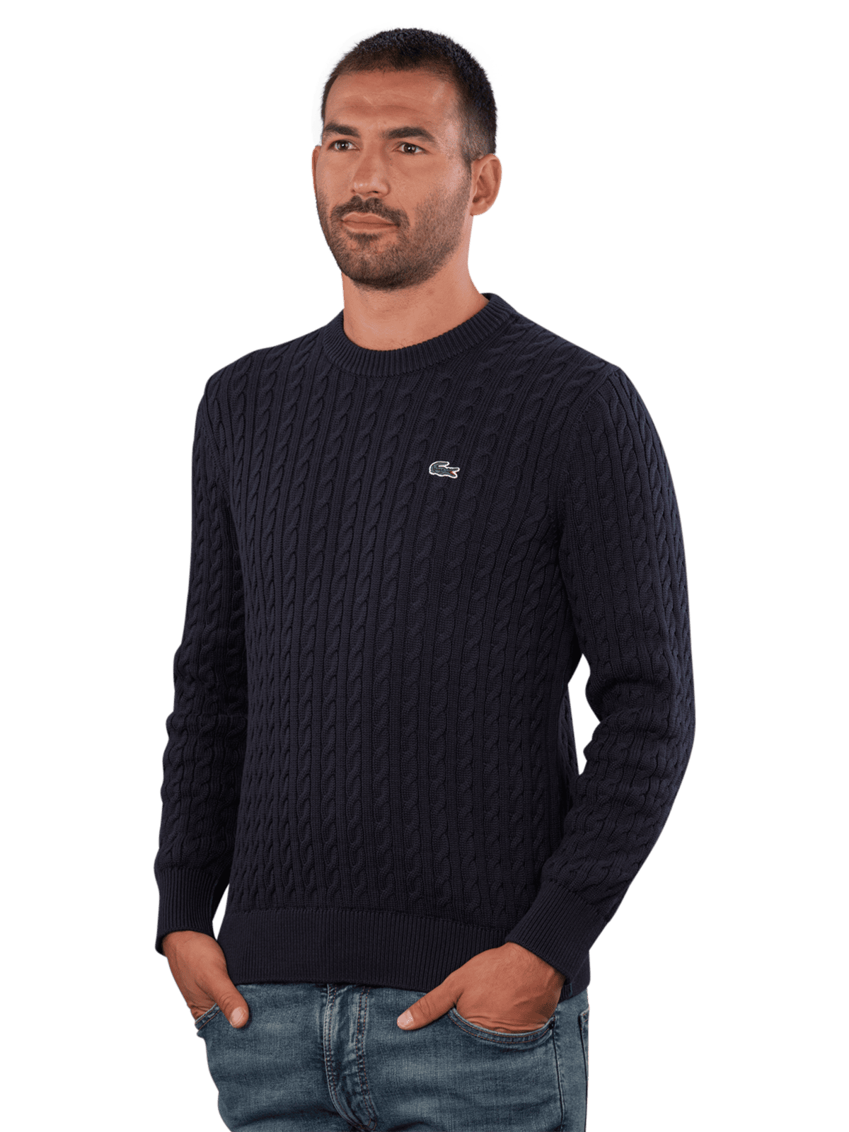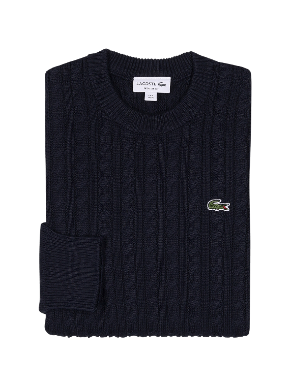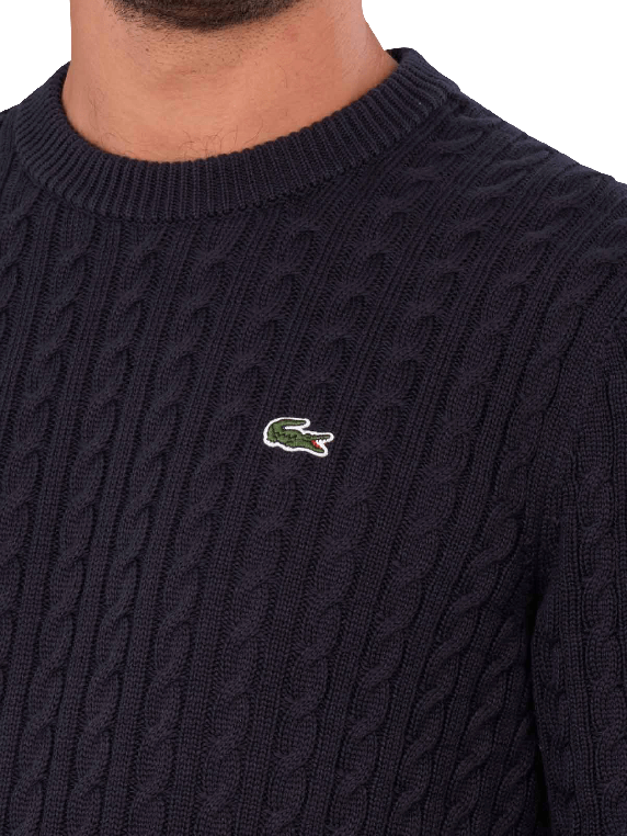 Lacoste Pullover Crew Neck Cable Knit in Dunkelblau bietet einen klassischen Rundhalskragen und eine zeitlose Strickoptik. Dieser Pullover ist ideal für legere Anlässe und lässt sich vielseitig kombinieren. Er ist pflegeleicht und kann bei 30°C im Schonwaschgang gewaschen werden. Der Pullover vereint Stil und Komfort, was ihn zu einer ausgezeichneten Wahl für moderne Männer macht.