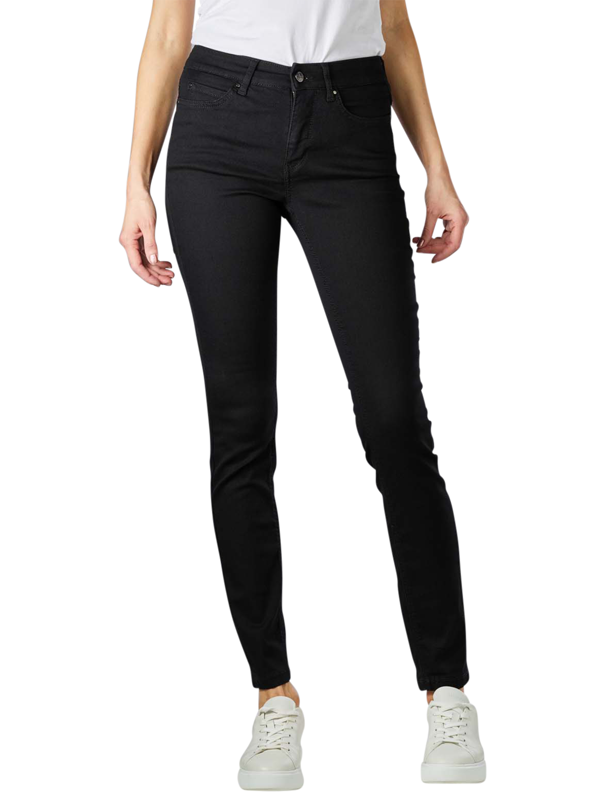 Die Mac Dream Skinny Jeans ist ein echter Allrounder. Die coole Five-Pocket-Jeans in Black Black mit normalem Bund und sehr eng und figurbetonend geschnitten Beinen wird vorne mit einem verdeckten Reissverschluss verschlossen. Sie besteht aus einem Materialmix mit Stretchanteil. Mac legt grossen Wert auf eine nachhaltige Produktion, daher werden bei der Herstellung strenge Richtlinien berücksichtigt - ein wertvoller Beitrag zum Klima- und Umweltschutz.
