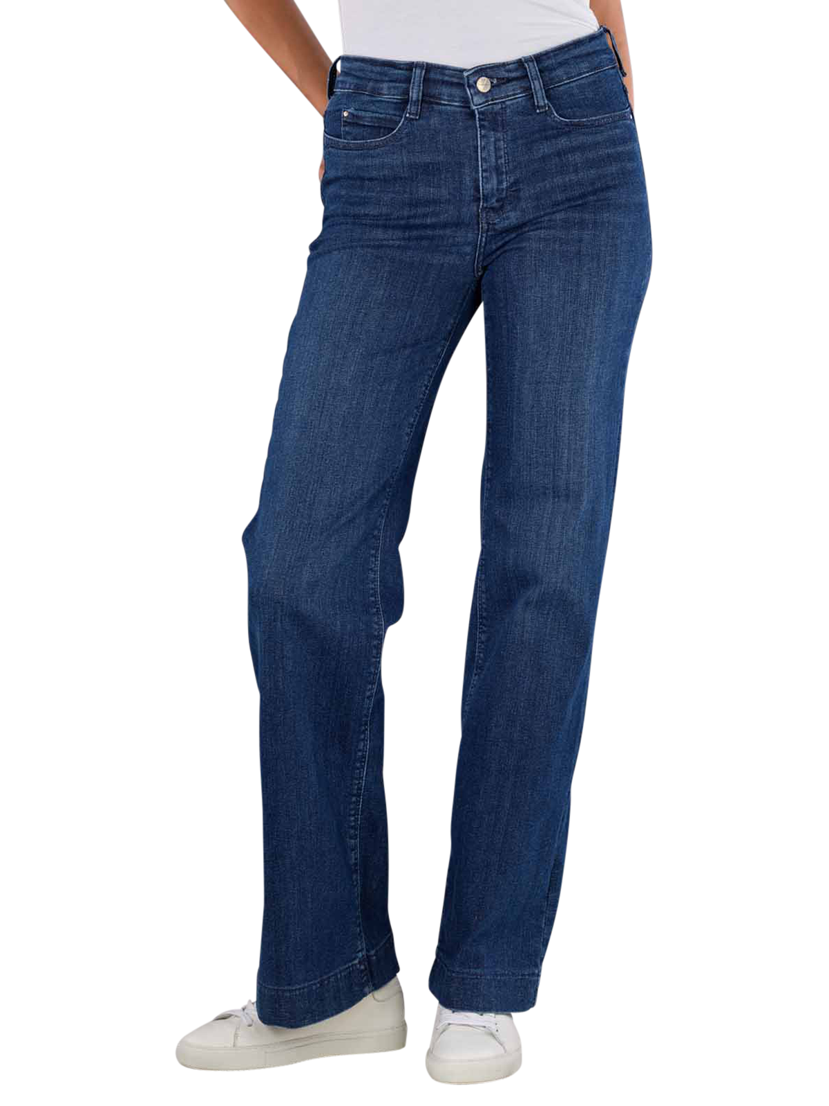 Die Mac Dream Jeans Wide Cobalt Authentic Wash für Frauen bietet eine weit geschnittene Passform und mittelhohen Bund in dunkler Waschung. Mit Stretchanteil sorgt sie für optimalen Komfort und Bewegungsfreiheit. Diese Five-Pocket-Jeans besteht aus 90% Baumwolle, 7% Elastomultiester und 3% Elasthan und enthält recycelte Materialien. Sie ist ideal für den Alltag und pflegeleicht im Schonwaschgang bei 30°C zu reinigen.