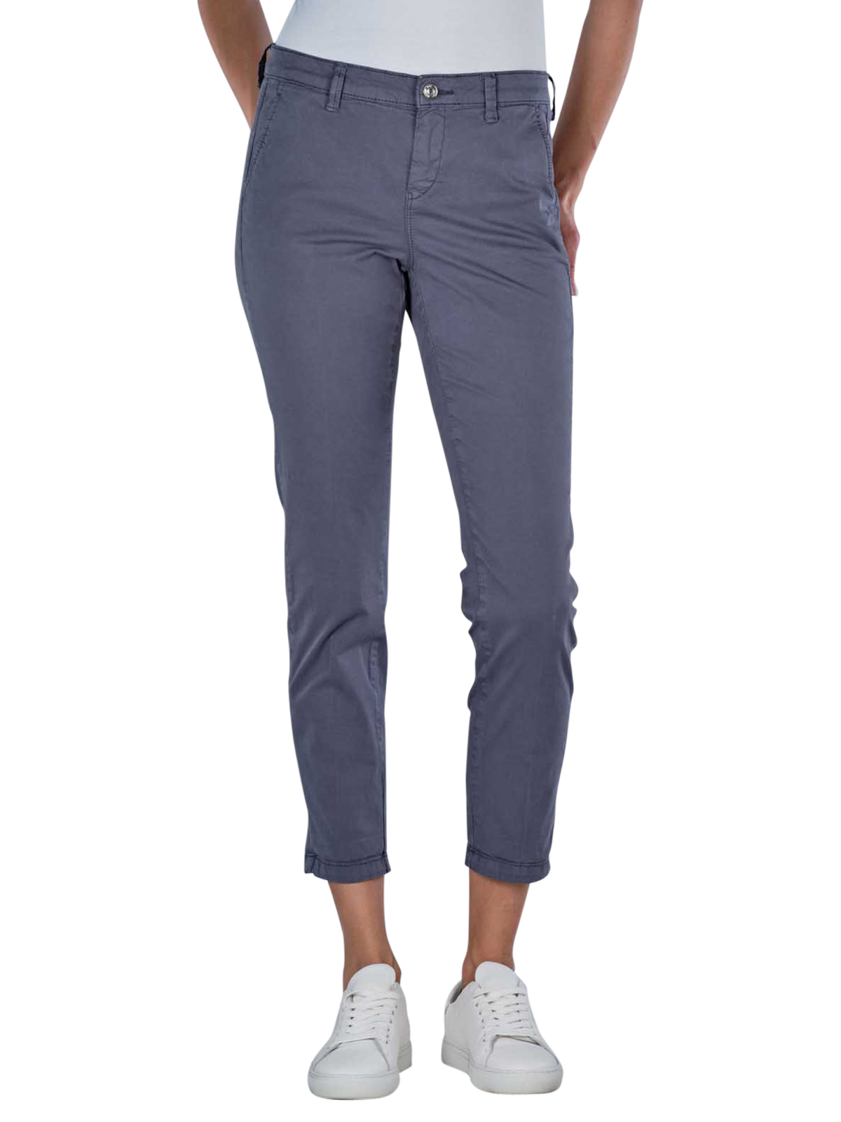 Die Mac Chino Turn Up Slim Fit Grisaille ist eine elegante Damenhose in Grau, die mit ihrer schlanken Passform begeistert. Der eng anliegende Beinausschnitt und die mittlere Bundhöhe verleihen ihr eine moderne Silhouette. Gefertigt aus einem leichten, elastischen Stoff, verspricht sie hohen Tragekomfort. Der hohe Baumwollanteil sorgt für Atmungsaktivität, während der Stretchanteil Flexibilität bietet. Ein praktischer Reissverschluss rundet das Design ab. Ideal für modische Frauen.