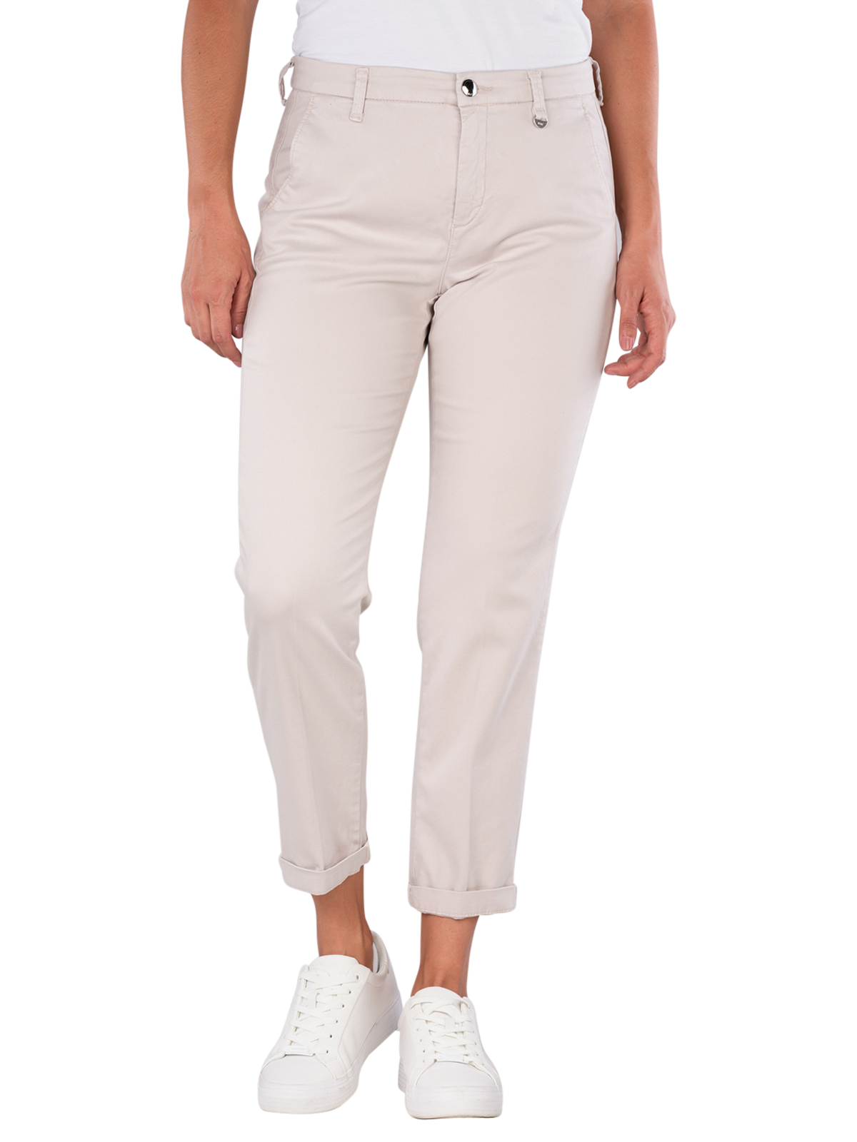Die Mac Turn Up Chino Slim Fit Winter Cotton Silver Dust bietet einen engen Beinausschnitt und eine mittlere Bundhöhe. Diese Chinohose in Beige ist für Frauen konzipiert und kombiniert einen modernen Slim Fit mit einem praktischen Reißverschluss. Der Stretchanteil sorgt für Bewegungsfreiheit, während die 7/8-Länge vielseitige Stylingmöglichkeiten bietet. Pflegeleicht im Schonwaschgang bei 30°C, ist sie eine nachhaltige Wahl für modebewusste Frauen.