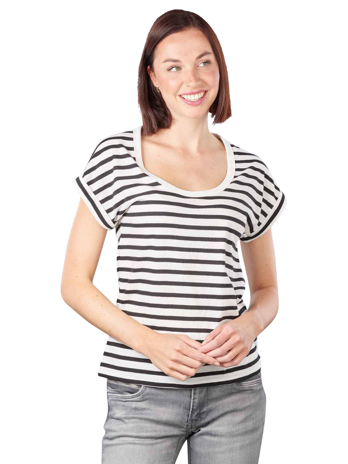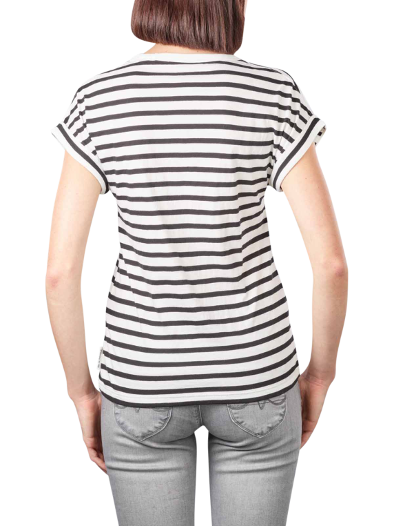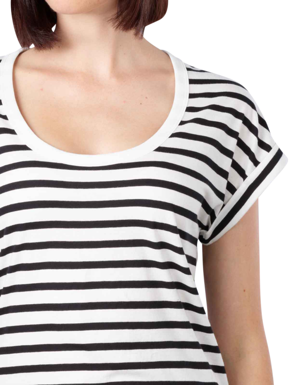 Das Damen T-Shirt Marc O'Polo Deep Round Neck macht mit einem bequemen und legeren Kleidungsstil aufmerksam. Es besitzt eine runde Kragenform. Bitte waschen Sie das Baumwollshirt schonend bei 30°C. Für den Trockner oder zum Bleichen ist es nicht geeignet. Sie können das Marc O'Polo Neck Shirt in Farngrün und Schwarz kaufen. Es ist auch als Schwarz-Weiss-gestreiftes Bekleidungsstück erhältlich.