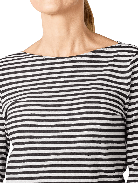 Das Marc O'Polo long Sleeve T-Shirt Boat neck multi/black ist leicht und atmungsaktiv. Es besteht aus reiner Baumwolle in Bio-Qualität und ist überaus angenehm zu tragen. Ein weiter ovaler Ausschnitt, auch als U-Boot Ausschnitt bekannt, hebt die leicht maritime Optik des schwarz und weiss gestreiften Shirts mit den langen Ärmeln hervor und prädestiniert das Shirt nicht nur für den Sommer.