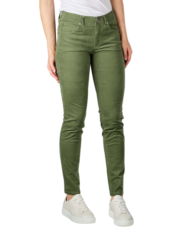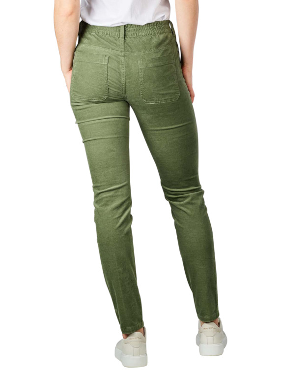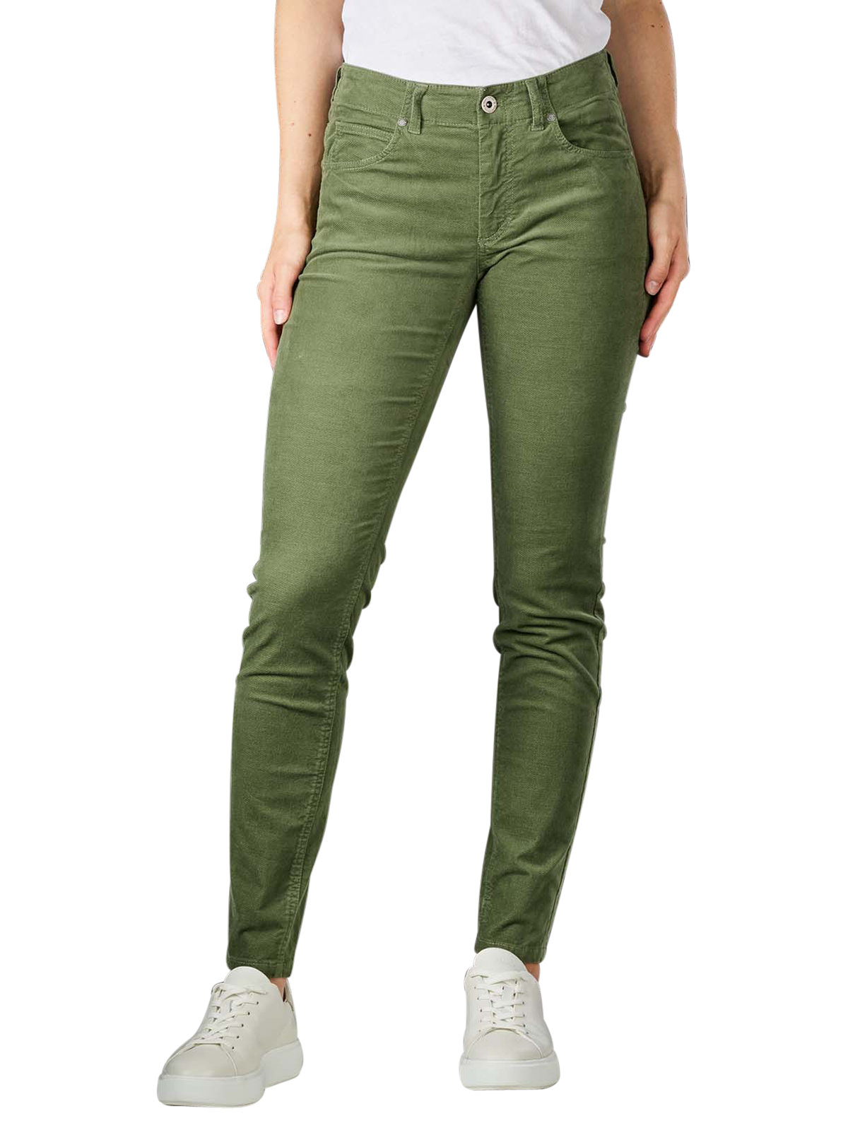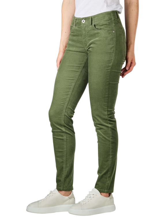 Damen Jeans in Sage Green, eine moderne Marc O'Polo Mavas 5 Pocket Twill Slim Fit mit verdecktem Reissverschluss und Knopf zum verschliessen. Dickerer Stoff in Standard Dicke. Eine typische Five Pocket Jeans im Stil Casual, Business, mit engem Beinverlauf und mittlerer Bundhöhe.
