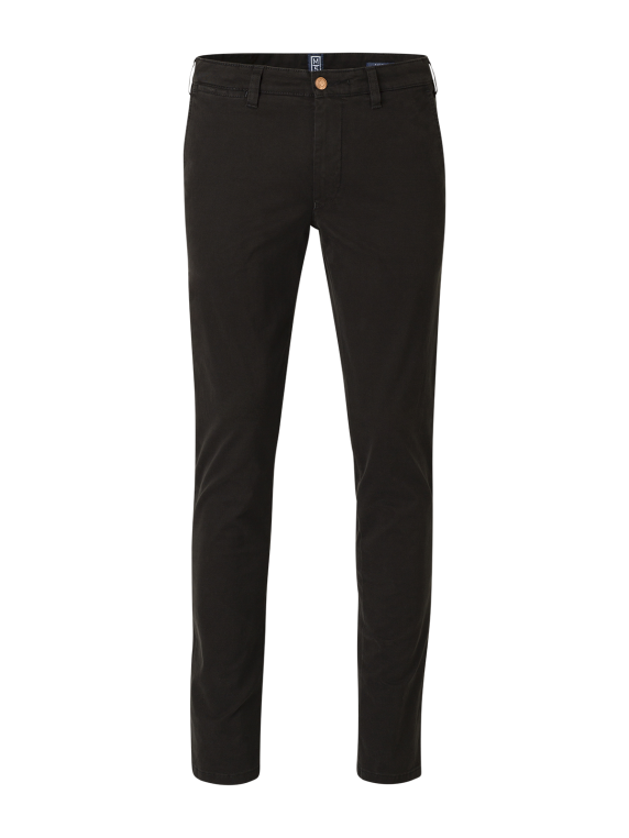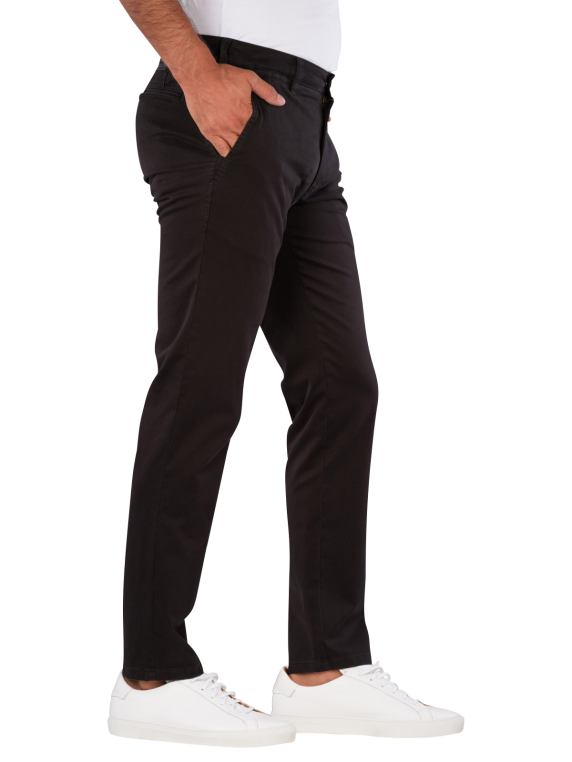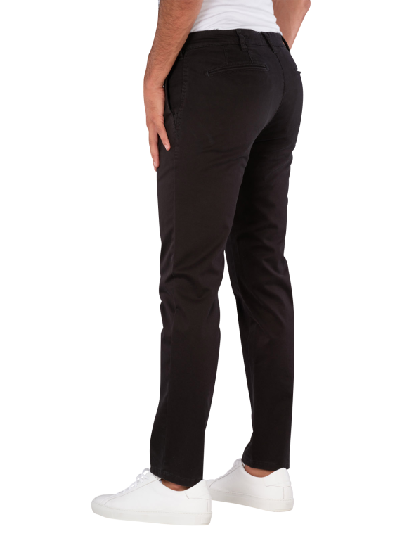 Die Meyer M5 Chino Regular Fit in Schwarz bietet eine gerade Passform mit mittlerer Bundhöhe. Diese Chinohose ist aus einem Standarddicken Stoff mit Stretchanteil gefertigt, was für hohen Tragekomfort sorgt. Der Reissverschluss ermöglicht ein einfaches An- und Ausziehen. Ideal für den Alltag oder formelle Anlässe, lässt sich die Hose vielseitig kombinieren und bietet eine moderne Silhouette für den modebewussten Mann.