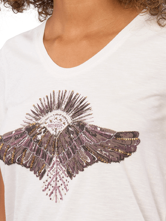 Das Mos Mosh Nadine T-Shirt in der Farbe Weiss/Ecru bietet einen klassischen Rundhalsausschnitt und ist aus 100% Baumwolle gefertigt. Es eignet sich ideal für den Alltag und lässt sich vielseitig kombinieren. Die Pflegeanleitung empfiehlt einen Spezialschonwaschgang bei 30°C und das Nichtbleichen, um die Qualität zu erhalten. Dieses T-Shirt vereint Komfort und Stil und ist eine wertvolle Ergänzung für jede Garderobe.