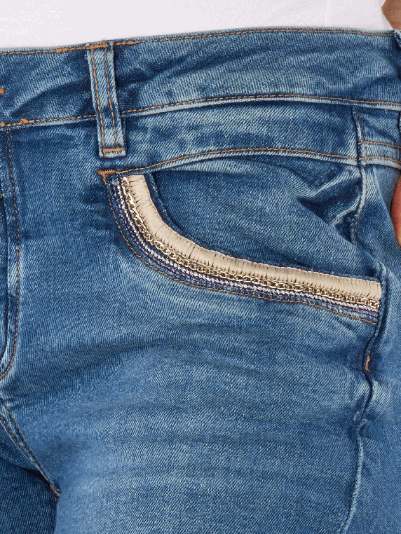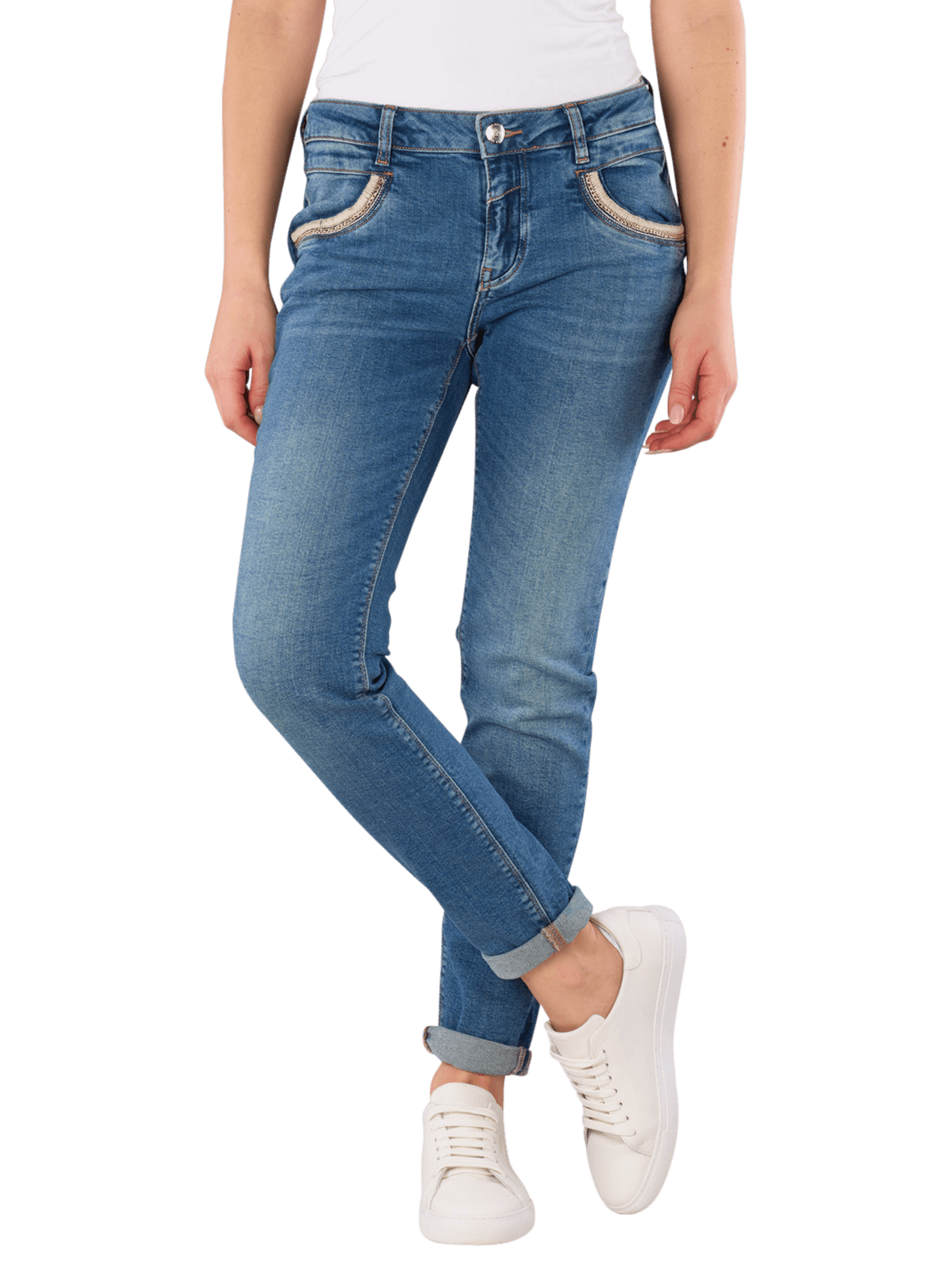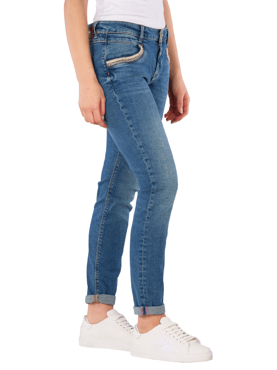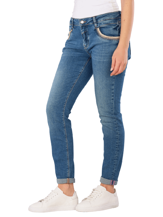 Die Mos Mosh Naomi Mateos Jeans im Regular Fit vereinen Komfort und Stil. In einem zeitlosen Mid Blue mit einer mittleren Waschung überzeugen sie durch ihren tapered Schnitt und den eng anliegenden Beinausschnitt. Der mittelhohe Bund sorgt für eine optimale Passform, während der Stretchanteil Bewegungsfreiheit bietet. Mit fünf Taschen und einem praktischen Reissverschluss sind diese Jeans ideal für den Alltag. Hergestellt aus 99% Baumwolle und 1% Elasthan, stehen sie für nachhaltige Mode nach Better Cotton Initiative (BCI).